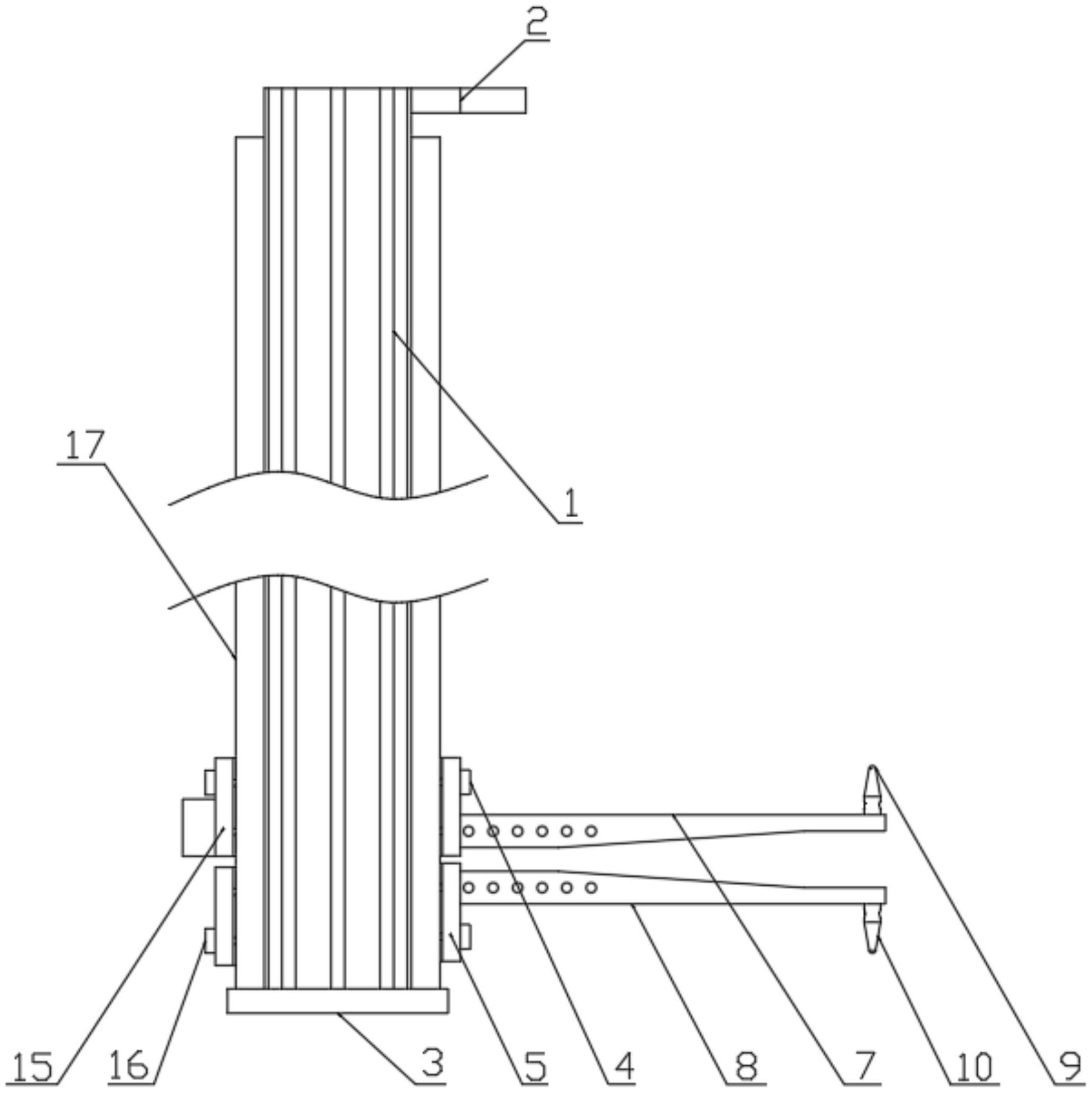 本实用新型公开了一种超高行程环刚度测试工装,涉及管材测量设备技术领域,包括支撑柱、上连接板、下连接板、第一拉线块、滑块、一级测臂、上测臂、下测臂、上测头、下测头、底板、线轮架、上线轮、下线轮、配重块、第二拉线块、配重导轨、支轴、安装板、编码器、下连接线和上连接线。本实用新型通过设置上测臂、下测臂、配重块和上线轮,通过编码器得到上测臂和下测臂的位移量,从而选出试样的变形量,根据支撑柱设置的长度,使得装置可以对于较大管径的管材进行测量工作,通过滑块来带动上测臂和下测臂进行上下运动,减少了装置自身的变形与晃动,保证了装置工作的精确性。