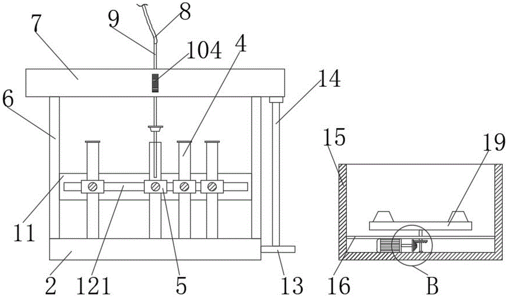 本实用新型涉及分析仪技术领域,且公开了一种高效使用的TOC总有机碳分析仪,包括机箱,所述机箱的右侧放置有底座,所述底座的顶部开设有凹槽,所述凹槽的上方设置有若干试管,所述试管的表面套设有套管。本实用新型通过套管、夹紧结构、导向结构、第一旋转杆、清洗盒、旋转结构和旋转盘的设置,使得该装置具备方便对试管的位置进行移动,提高检测效率,而且可以增加清洗吸管时的洁净度,提高检测准确性的优点,解决了现有的分析仪进行检测时,不方便对试管的位置进行移动,导致工作效率较低,而且在清洗吸管时不够彻底,吸管表面容易残留有溶液,可能造成不同溶液混合造成检测数据不准确的问题。