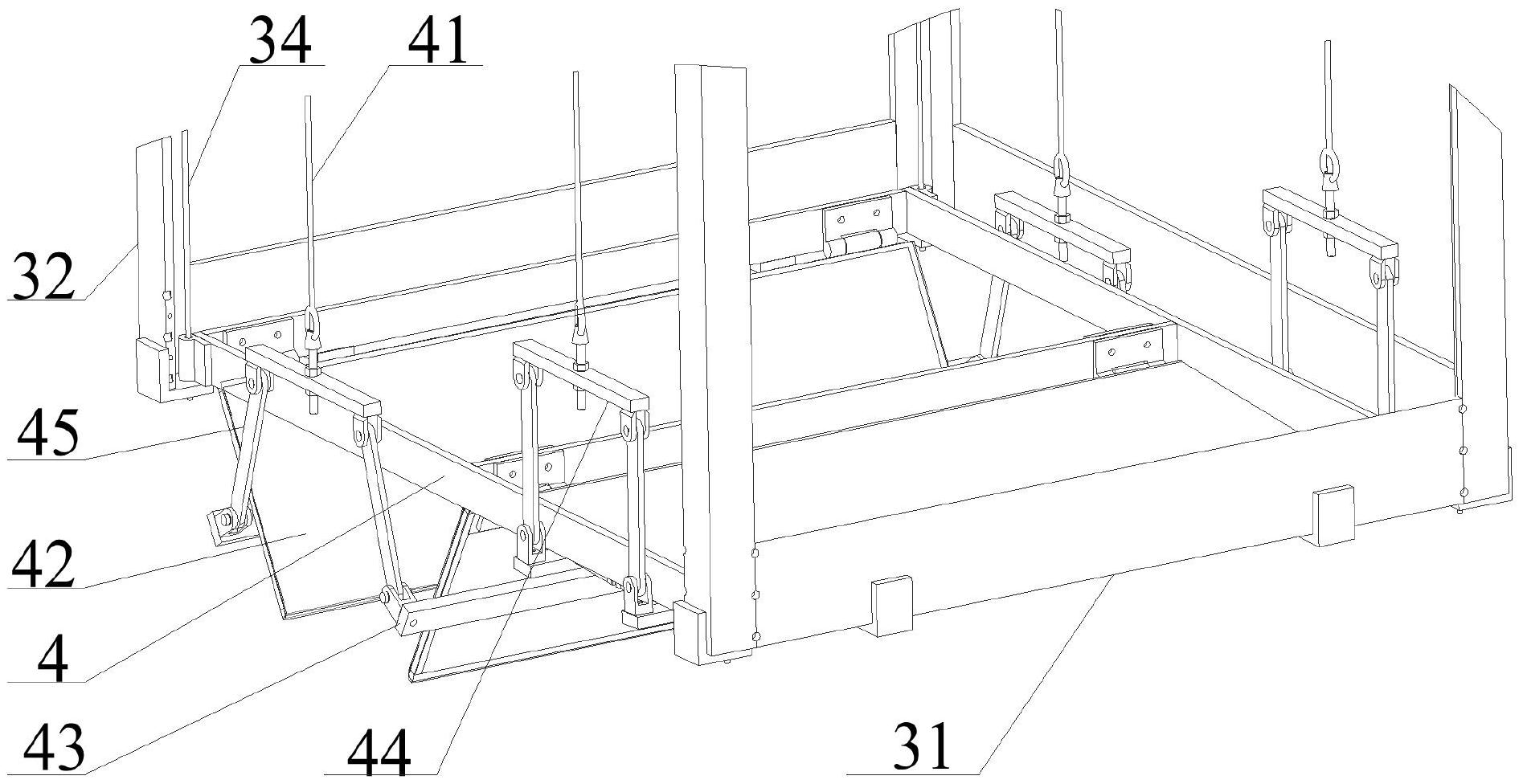 本实用新型涉及装车设备技术领域,提供了一种触碰开合式放包机构,包括设置在框体中的升降架体,升降架体上设置有接包组件,包括两扇可对开或闭合的载物板;载物板的底部固设托杆;托杆的两端分别通过牵拉组件连接架体拉绳;框体的底部设置有挡块;当升降架体与挡块分离:架体拉绳拉紧,各接包组件的载物板闭合,托杆抵接升降架体;架体拉绳的收起或放开带动升降架体的上升或下降;当升降架体放置在挡块上:架体拉绳继续放开,接包组件的两载物板打开。借此,本实用新型通过接包组件在升降过程中平稳运送物料包,到达最低位触碰到挡块后才打开使物料包落下。结构简单紧凑,放包过程平稳迅速。在保证放包动作安全的前提下,大大提高了放包效率。