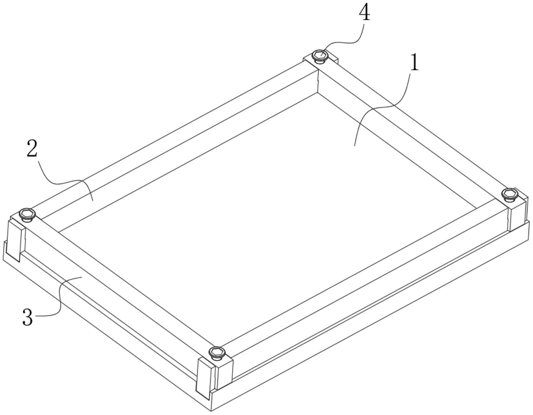 本实用新型提供一种PC板用支撑胶框,包括底板,所述底板顶部的两侧开设有第一安装卡槽,所述底板顶部的两端开设有第二安装卡槽,所述第一安装卡槽的内腔设置有第一边框条,所述第二安装卡槽的内腔设置有第二边框条。本实用新型提供的PC板用支撑胶框通过在第一安装卡槽和第二安装卡槽上设置有多组第一限位块和第二限位块并与第一边框条和第二边框条上的第一限位槽和第二限位槽相互适配支撑,从而可提高第一边框条和第二边框条的抗弯折能力,提高第一边框条和第二边框条的强度,有效的防止第一边框条和第二边框条弯折或断裂,提高了该支撑胶框的使用寿命,从而降低了用户的使用成本。