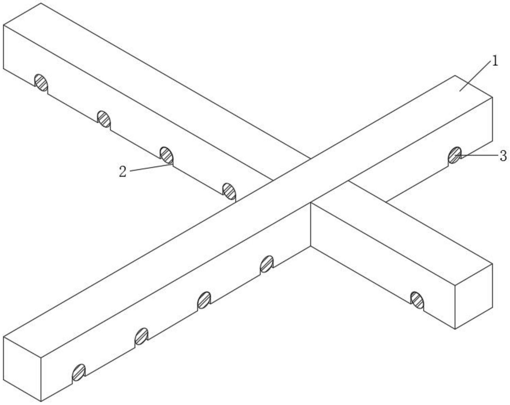 本实用新型提供一种喷射混凝土钢筋网多种钢筋间距控制装置,涉及边坡支护工程技术领域,十字形镀锌空心方管,所述十字形镀锌空心方管的底部开设有多个限位孔,所述限位孔的内部卡设有光圆钢筋。本实用新型,制作、安装简单,低成本、低能耗,可实现多种间距规格钢筋网编制,既能达到施工图设计及规范规定的允许误差值,又可以提升钢筋网整体编制安装观感,钢筋网一次施工成型,钢筋网隐蔽验收通过率高。