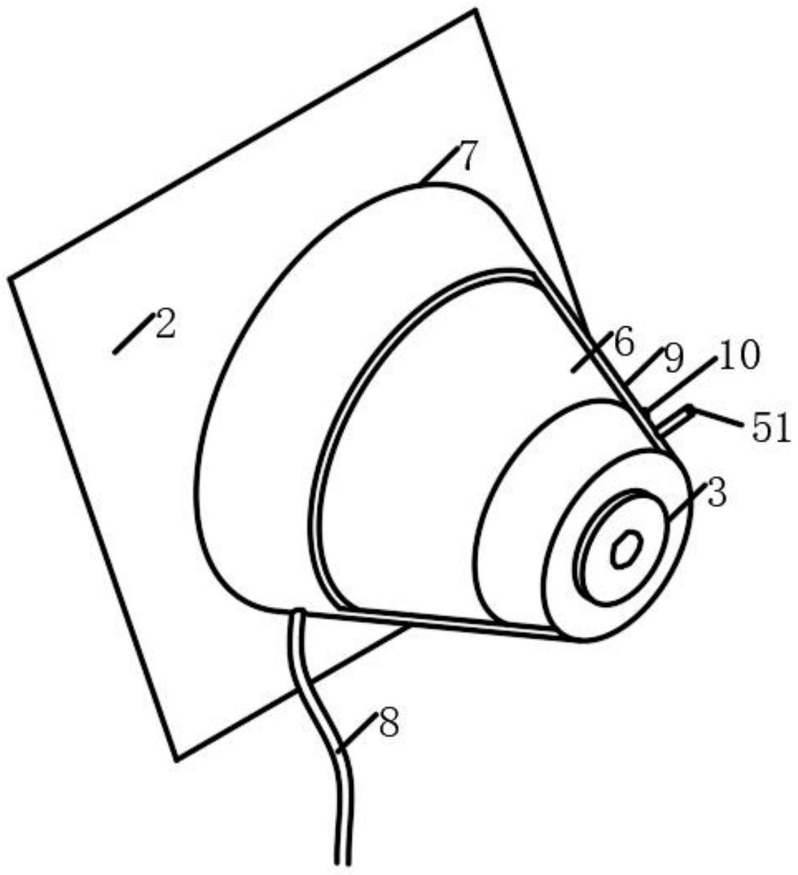 本实用新型提供一种钻孔降尘装置,涉及边坡支护工程施工技术领域,包括钻杆、岩质边坡坡面和孔口贴合罩,所述岩质边坡坡面的外表面设置有孔口贴合罩,所述孔口贴合罩的一端设置有钻杆封闭圈,通过将孔口贴合罩上的安装吊环将本实用新型安装在岩质边坡坡面上,在钻孔作业时,通过压力水入口管道往存水腔内注入水源,然后经过L型管道和雾化喷头喷洒出,将钻孔作业时产生的灰尘,经水雾初步降尘并凝结成颗粒,掉落在孔口贴合罩内,实现降尘除尘效果、控制粉尘扩散,满足施工场地内对文明施工的要求,解决了因粉尘过多的话可能会导致视线模糊的情况以及吸入过多粉尘对施工人员的身体健康存在一定的隐患的情况。