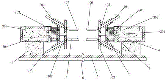 本实用新型公开了一种铝合金加工用定位夹具,包括底板和胶垫,所述底板的下端固接有胶垫,所述底板的上方左右两侧均通过垫块与箱体固定相连,所述箱体的内部安装有动力装置,所述动力装置和夹持装置的内侧均设有限位装置。该铝合金加工用定位夹具,通过液压缸、液压杆、斜杆、第三竖板、第一套筒、横板、橡胶垫和竖杆之间的配合,解决了现有技术无法进行同步夹持定位导致夹持效果较差的问题,通过第一竖板、第二竖板、弹簧、卡块、第一轴承、第二轴承、第三竖板和竖杆之间的配合,使完成工件的一面加工后可向外拉动第三竖板并转动180度后松开即可完成工件翻转,解决了现有技术只能在需要加工工件另一面时进行重新夹持的问题。