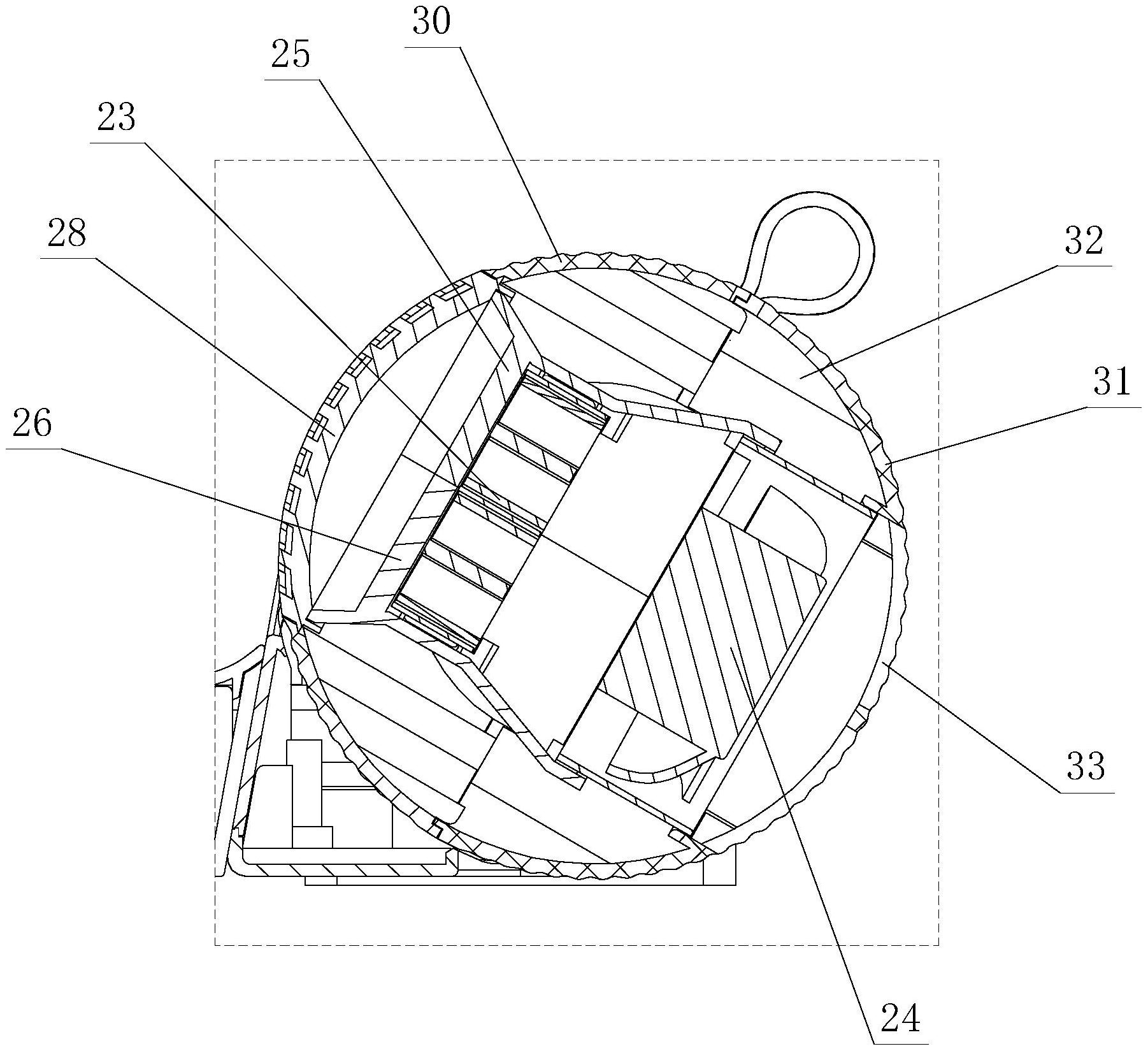 本实用新型涉及一种热风角度可调节的暖脚垫,包括发热垫装置和热风装置,热风装置设置在发热垫装置侧部、且包括壳体和热风组件;热风组件转动设置在壳体上、且朝发热垫装置的方向设置有出风部,出风部在热风组件转动时向发热垫装置的方向吹出不同角度的热风。本结构利用热风组件与壳体之间的转动配合,从而使热风组件在工作时产生的热风能够通过出风部向发热垫装置的方向吹出不同角度的热风,以让用户能够利用发热垫装置实现脚掌取暖的同时,还能利用热风组件的转动对脚背实现不同角度的热风吹导,不但减少热风浪费,还能提高用户的使用体验。