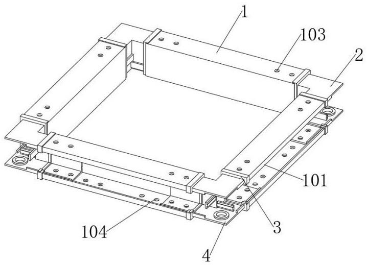 本实用新型公开了一种风机箱体法兰,涉及风机安装用法兰技术领域,包括边框,所述边框侧端设置有角码体,所述角码体位于两个相邻边框的夹角处,所述角码体外端套接有移动套,所述移动套位于边框与角码体两者的连接缝隙处,所述角码体下端固定连接有角码板。角码体能够在边框内进行位置调节,以此对装置的边长调节,使其对不同大小的风机安装固定,解决了现有的风机安装用法兰,其大小无法改变,不能很好的适用于不同大小风机的问题,装置设置有多种密封结构,能使风机与装置之间密封紧密,解决了现有的风机安装用法兰,一般采用螺栓连接,其风机与法兰之间会具有缝隙,在风机工作时,两者连接缝隙处漏风,将会导致风机工作效率降低的问题。