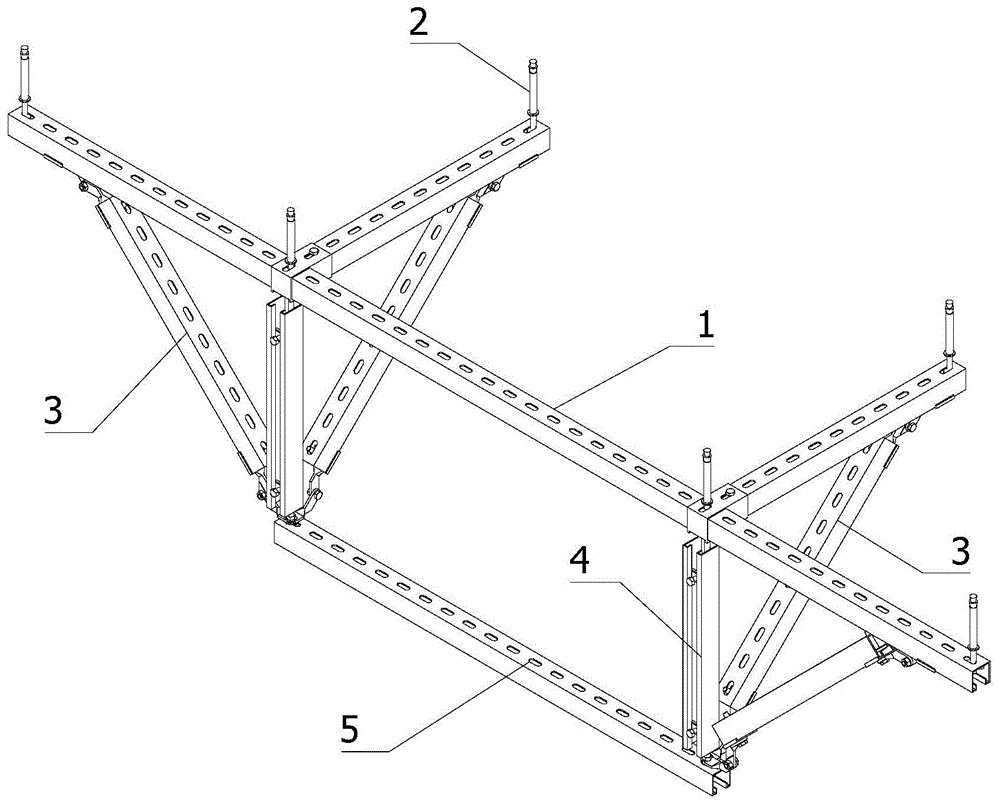 本发明涉及抗震支架领域,特别涉及一种便于安装的自锁型抗震支架,滑轨支架安装在连接件上并紧贴屋顶设置,置物支架安装在连接件远离屋顶的一端,连接件包括有固定安装在屋顶上的后扩底吊筋和后扩底锚栓,横梁连接件的底部设置有与后扩底吊筋螺纹连接的第二自锁结构,第一横梁和第二横梁中设有与后扩底锚栓螺纹连接的第一自锁结构,置物梁中设有与后扩底吊筋螺纹连接的第七自锁结构,滑轨支架上安装有分别位于连接件的两侧和连接件的后方的四根斜拉支架,连接件上位于滑轨支架和置物支架之间安装有加强支架,该支架可以在地面上完成装配后再安装到屋顶,所有连接机构均为自锁结构,无需使用量角设备即可安装成标准的45度角,安装快速、便捷。
