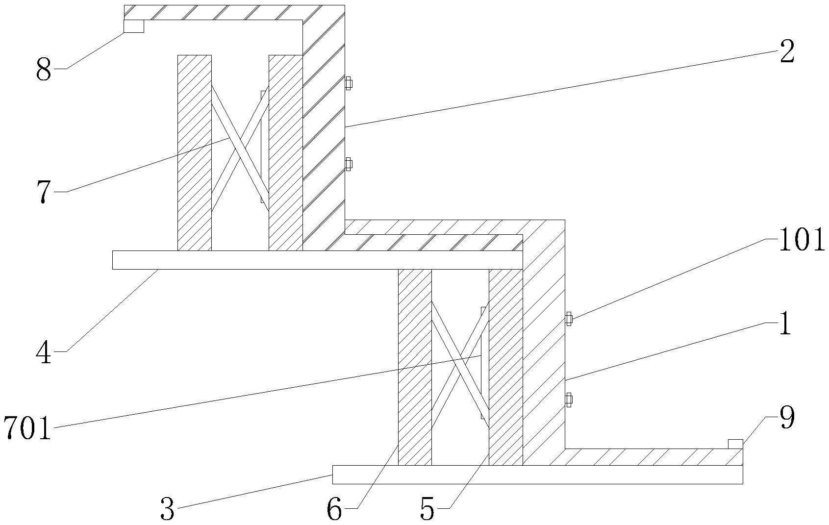 本实用新型属于异型钢技术领域,尤其为一种Z型钢定位桩,包括第一Z型钢本体和第二Z型钢本体,所述第二Z型钢本体位于第一Z型钢本体顶部的下方,所述第一Z型钢本体和第二Z型钢本体的底端面分别设置有第一定位桩和第二定位桩,所述第一定位桩和第二定位桩的上端面从左至右依次均固定连接有竖板和固定板,两个所述固定板的左侧壁均固定连接有限位板,两个所述竖板分别与两个固定板相对的前后两端均固定安装有固定架,从而通过将第一Z型钢本体上的第一限位块安装于凹槽的内部,以及将第二Z型钢本体上的第二限位块安装于卡槽的内部,进而使两个Z型钢相互连续的固定,以及通过U型螺栓体将Z型钢固定在固定板上,使得Z型钢连接更加的稳定。