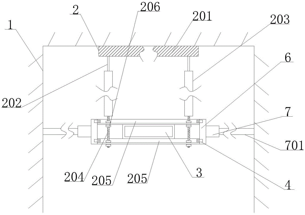 本实用新型公开了一种矩形风管双向抗震支架,包括墙体、支架组件、风管本体、连接角铁、安装孔、支撑板和抗震组件,所述墙体的表面固定安装有支架组件,所述支架组件的内部设置有风管本体,所述支架组件的表面固定安装有连接角铁,所述连接角铁的内部开设有安装孔,所述支架组件的两侧固定安装有支撑板。本实用新型通过对常用的支架进行改进使得该矩形风管双向抗震支架在使用时可以对夹板之间的距离进行调节,使其能够适应不同尺寸的矩形风管,从而达到提高其后期的可操作性,且通过设置的抗震组件使得该抗震支架在运行时可以将风管产生的震动降低,达到延长了其使用寿命,具有广阔的发展空间以及较高的推广价值。