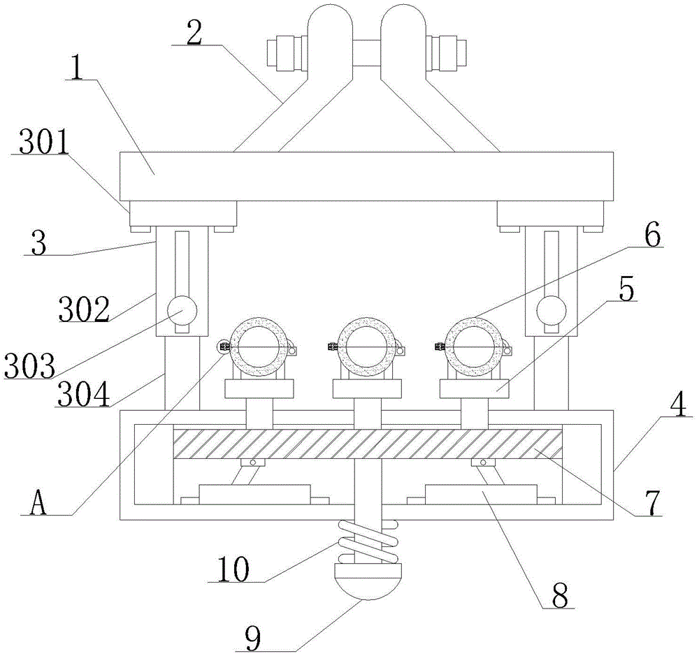 本实用新型公开了一种单管抗震支吊架,包括固定板、悬挂件、高度调节组件、底部横板、连接件、管夹组件、支撑板、抗震装置、缓冲杆和减震弹簧,所述固定板的顶部固定安装有悬挂件,所述固定板的底部设置有高度调节组件,所述高度调节组件的底部固定安装有底部横板,所述底部横板的内部活动连接有支撑板。本实用新型通过对常用的支架进行改进,使其在使用时可以方便的对水管的悬挂高度进行调节,方便安装,再由设置的抗震装置使其在使用时可以将水管运作时产生的震动吸收,从而延长该支架的使用寿命,且多工位的设置也极大方便了安装,且其结构简单,易于实现,方便安装和后期的维护,具有广阔的发展空间以及较高的推广价值。