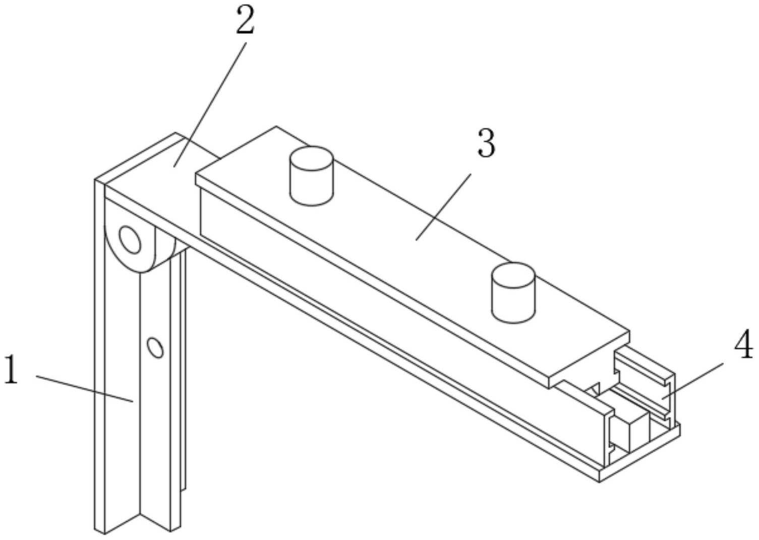 本实用新型公开了一种空调系统用螺杆式锚栓组件,包括固定架、横梁架、滑动架与定位板,所述横梁架铰接固定架的上端,所述滑动架滑动安装与横梁架的上表面,所述横梁架的上表面固定安装有定位边,所述定位板为对称两片,两片所述的定位板夹持于滑动架的两侧;通过固定架与横梁架的组合,使得整体能够进行角度的调节,而调节支杆的作用能够有效的对活动的结构进行支撑,滑动架通过自身的滑动,能够进行支撑长度,从而实现更多的适配性。