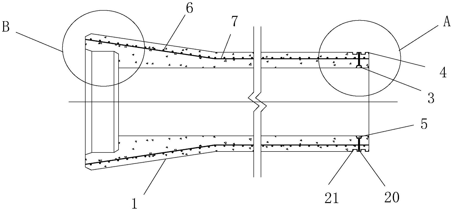 本申请公开了一种新型接口预应力混凝土管,插口工作面外侧面呈双凹槽设置,可实现成品管接口的即时安装打压及具有定位不脱移功能。插口工作面独特的形状及外侧装配的不锈钢圈形成了几重阻水带,杜绝界面窜水渗漏,安装方便快捷的目的。不锈钢圈具有一定的刚度同时又能够随着生产过程中内膜升压阶段时的挤压作用而紧贴工作面处的插口模内壁,确保插口工作面的椭圆度满足要求,同时不用防腐处理,节约制造成本。由于不锈钢圈的套加,使得管口强度增加,具有一定的耐磕碰型性,可提高安装效率及合格率,还可免除对安装管线的整体打压费用,同时提升管线的安全耐久性,降低运维费用。