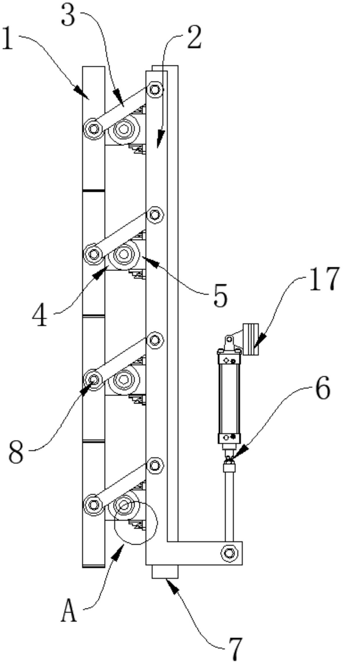 本实用新型公开了一种便于更换的空气净化器导风板,包括导风板本体,所述导风板本体外部的两侧固定有连接套筒,所述连接套筒内部通过滑轨滑动设置有滑动套筒,所述滑动套筒的一端连接有复位弹簧,所述复位弹簧的一端连接到连接套筒的内部,所述滑动套筒另一端的内部设置有限位块,所述滑动套筒的内部滑动设置有固定轴,所述固定轴的外部开设有滑槽,所述限位块卡在滑槽中,本实用新型通过用工具移动滑动套筒,滑动套筒就会在连接套筒中移动,从而固定轴与滑动套筒就会分开,然后通过用工具摆动第一弹性卡件,第一弹性卡件就会与第二弹性卡件分开,第二连接块就会从固定板中取下,从而导风板本体可以拿下进行更换。