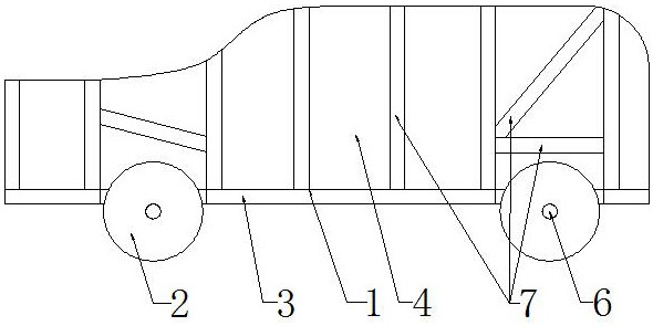本实用新型涉及一种防撞测试柔性车体,包括车体和车轮,所述的车体包括底板、设置在底板上两侧的侧板和设置在两侧板之间的多个相互独立的支撑板,所述的底板下侧设置有转动轴,所述的转动轴两端安装有车轮,所述的侧板为左低右高渐变的结构,所述的底板、侧板、支撑板和车轮均由发泡塑料制成,总体上,本实用新型具有结构简单,生产成本低,重量轻,碰撞变形后能够很快自动恢复原始形状,不产生永久变形结构稳定,不易损坏能够多次重复使用,优异的抗压吸能性能有效抵抗冲击,具有极高的使用价值的优点。