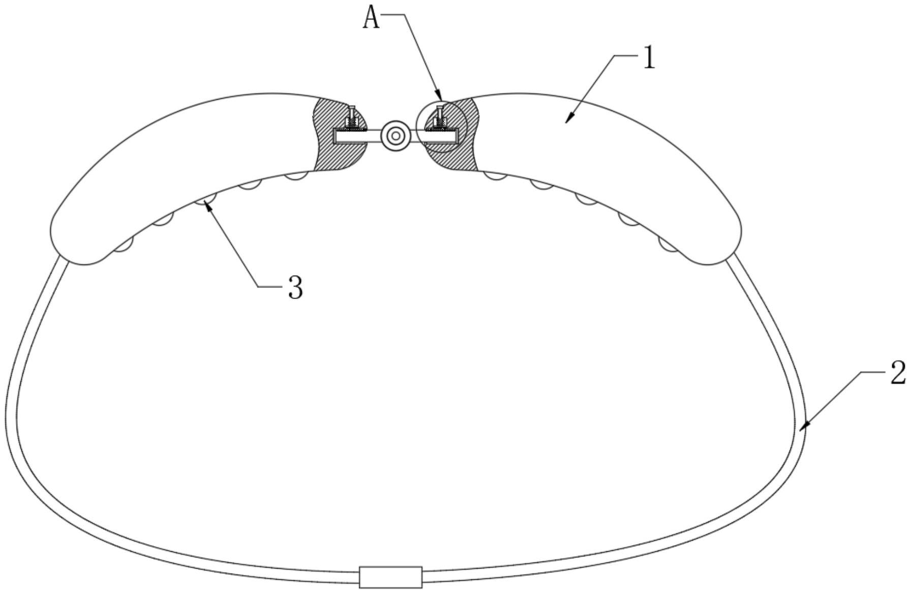 本实用新型公开了一种眼部按摩治疗仪,包括两个壳体,两个所述壳体相邻的一侧均开设有滑槽,两个所述滑槽的内部均滑动连接有滑杆,两个所述滑杆相邻的一端通过销轴铰接,所述滑槽的一侧开设有槽孔,所述槽孔的内部设有连接杆,所述连接杆的一端焊接有第一连接板,所述第一连接板的一侧均匀的焊接有限位杆,通过滑杆在滑槽内部进行滑动可以对两个壳体之间的距离进行调整,同时通过第一连接板、限位杆和限位槽可以对滑杆的位置进行固定,从而使两个壳体之间的距离被固定,同时通过销轴可以对两个壳体之间的角度进行调整,使本装置可以贴合不同人群的眼部,使得按摩的效率更高。