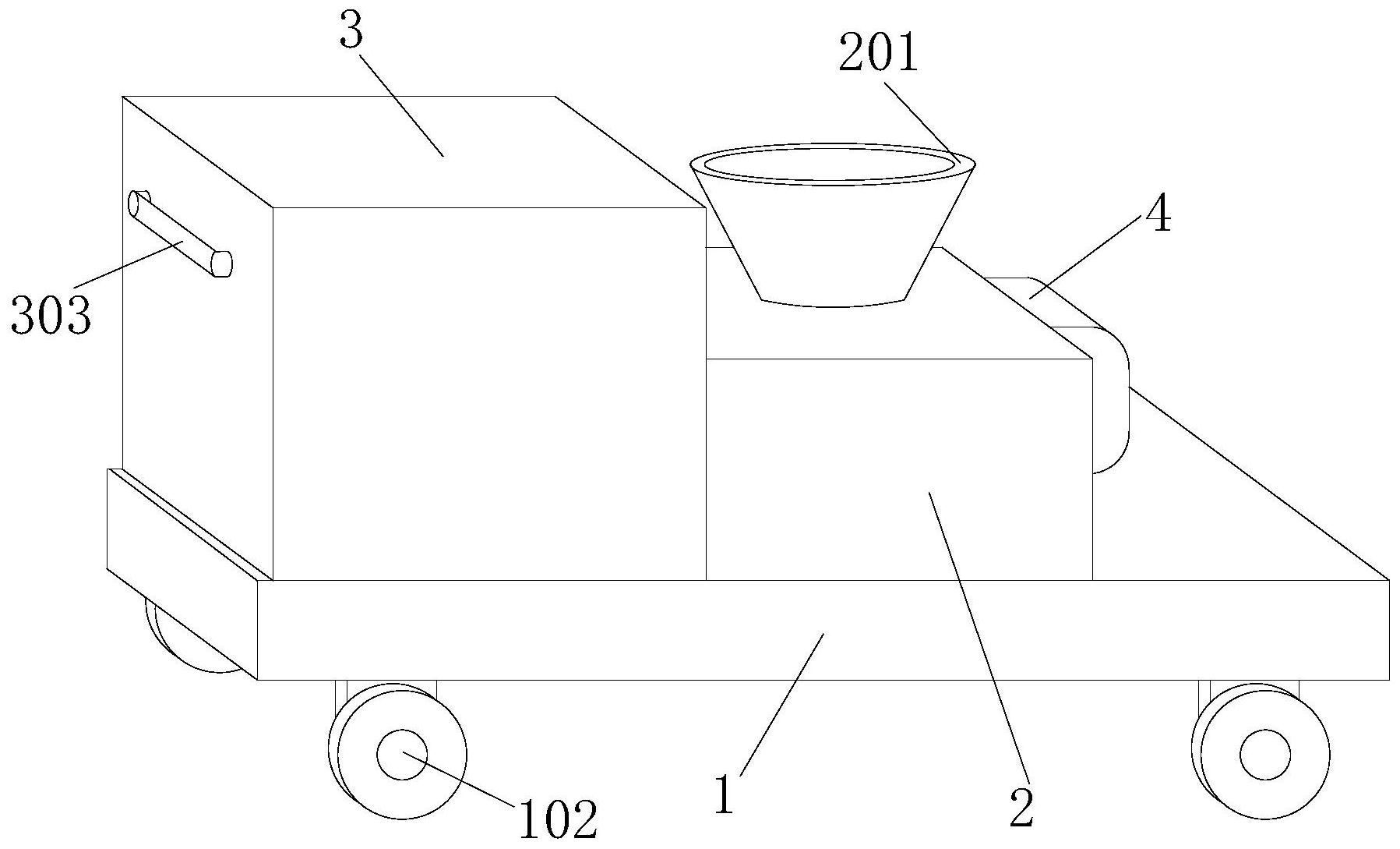 本发明涉及膨化机辅助设备技术领域,尤其涉及一种宠物食品膨化机进料口防堵装置及其防堵方法。本发明要解决的技术问题防堵成本高、生产效率低和维护繁琐的问题。为了解决上述技术问题,本发明提供了一种宠物食品膨化机进料口防堵装置及其防堵方法,本发明由底座、进料箱、输送加热箱、输送机构和预热机构成,本发明构思巧妙,通过偏心轮和主动齿轮将动力分别进行传递,在实现防堵的同时减低企业的生产成本;本发明含有的预热机构,通过输送机构将原材料进行输送的同时,对原材料进行预热,有效的提高膨化机的生产效率;避免在长时间使用时对膨化机的进料口损坏情况的发生,只需更换整体后对装置进行维修,保障企业生产。