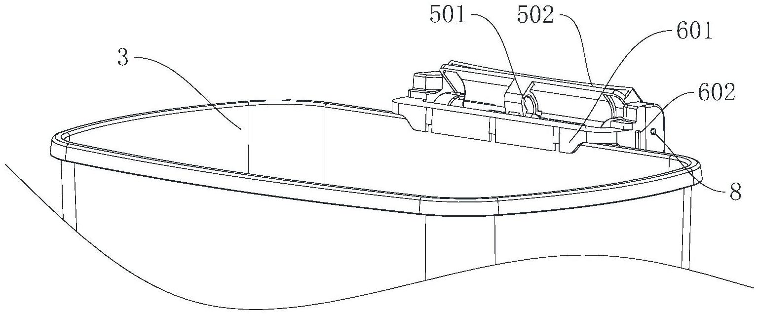 本实用新型公开了一种桶盖可方便拼装的垃圾桶,包括分体设置的桶身、口环和桶盖,使三者可以灵活摆放成尽可能小的运输体积,桶身的桶口处预装有至少两个可转动的连接件,分别设为口环连接件和桶盖连接件,口环连接件与口环之间设有相适配的第一卡合结构;桶盖连接件与桶盖之间设有相适配的第二卡合结构,将安装难度较高的连接件以预装的形式安装在桶口处,所有连接件不阻碍多个桶身的叠套,用户只需安装简单直观的第一卡合结构和第二卡合结构,由此转动结构也可以设计成强度较高、较难安装的结构,以保证使用寿命,而非主要受力结构的第一卡合结构和第二卡合结构则可以设计成强度相对较弱但安装方便顺滑的卡合结构,提升用户的体验感。