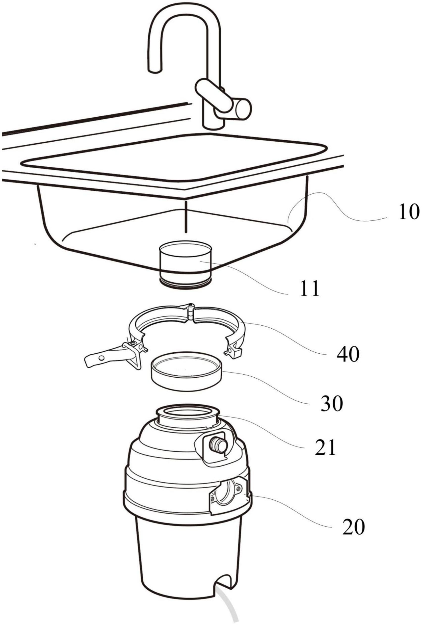 本实用新型公开了一种一体化水盆,包括:盆体,盆体的底部具有与盆体一体成型的落水口,落水口用于连接厨余垃圾处理器;厨余垃圾处理器,厨余垃圾处理器设置于盆体的下方,厨余垃圾处理器的顶部具有入料口;密封连接件,密封连接件的两端分别与盆体的落水口及厨余垃圾处理器的入料口密封连接,以在盆体和厨余垃圾处理器之间形成密封的通路;固定件,固定件将密封连接件与落水口及入料口固定在一起。本实用新型提供一种一体化水盆,其可与厨余垃圾处理器连接的落水口与盆体一体成型,并且通过密封连接件将落水口与厨余垃圾处理器的入料口密封连接,这种一体化的结构使得水盆能够便捷的与厨余垃圾处理器连接,并且具有较高的适配性和密封性。