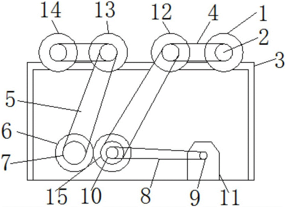 本实用新型公开了一种针梳机喂入架,包括主体机架,主体机架的顶端从右往左依次设置有第一滚筒、第二滚筒、第三滚筒和第四滚筒,且第一滚筒、第二滚筒、第三滚筒和第四滚筒的内部均套接有第一链轮,且第一链轮的一端均裸露在第一滚筒、第二滚筒、第三滚筒和第四滚筒的一端外侧,裸露在第一滚筒和第二滚筒一端外侧的第一链轮通过第一链条连接。该针梳机喂入架,第一滚筒和第二滚筒向右运转,第三滚筒和第四滚筒向右运转,从而达到防止欠伸力的增加和欠伸不开,加强对欠伸力的控制,使成品率增加,减少接头、消耗大、工人劳动强度大的问题,整个装置,实用性强,操作方便,提高了成品率,降低了劳动强度,节约了花费。