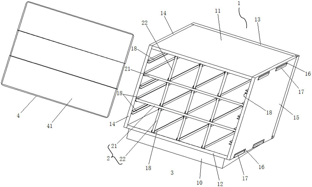 本实用新型涉及一种拼装式车载整理箱,包括有前侧开口的箱体和多块分隔板;其中,所述箱体是由多块板拼装而成的箱体,且每块板的内侧表面设有两两相对设置的卡槽;所述多块分隔板可拆卸地设于箱体内,且端部缘边卡在对应卡槽内,使箱体内形成多个分类收纳腔。这样,即可有效地对物品进行分类放置,同时开口朝前,存放物品一目了然,车厢整齐、干净,取放方便、快捷,而且整理箱拆分体积极小,便于运输,节省运输费用,尤其在互联网平台上进行销售更能占据优势,并且结构简单,生产加工容易,也极易被使用者接受,市场开拓、普及应用容易,从而容易获得商业成功。