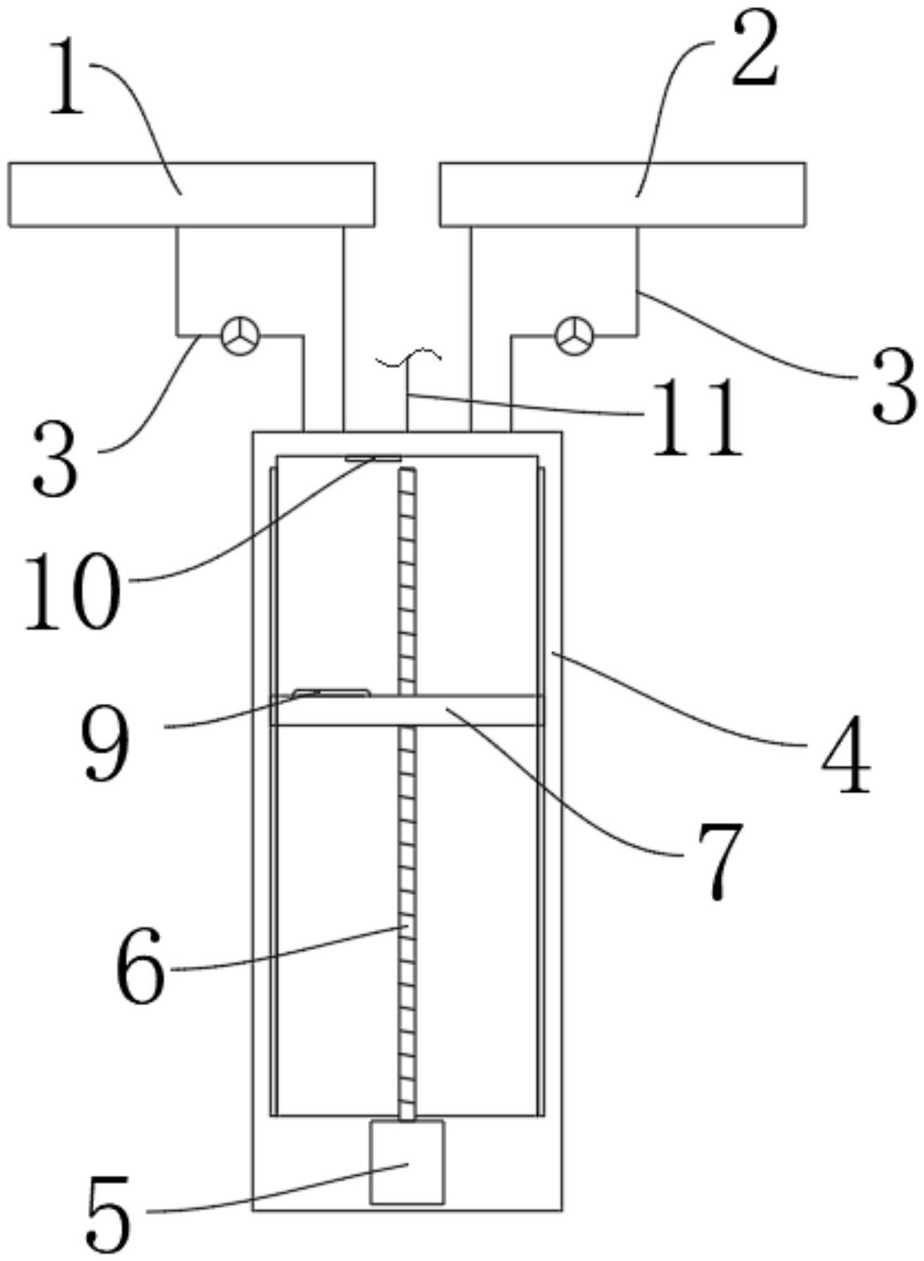 本实用新型涉及热水器水箱领域,具体为热水器水箱结构,包括太阳能集热器和空气能集热器;所述太阳能集热器和空气能集热器的下端分别安装有一组供水管道,两组所述供水管道的下端均安装在水箱的顶部,本实用新型中,在需要使用热水时,通过对水箱的控制,以通过降低需加热水量的方式,快速提升热水温度,能够快速获得所需温度的热水,通过控制隔盘与水箱顶部的距离,以控制待循环流体的数量和加热时间,方便按需求调节,且还能够在供水不足如不能填满水箱时,能够正常使用太阳能集热器和空气能集热器获取所需热水,方便在缺水环境下使用。
