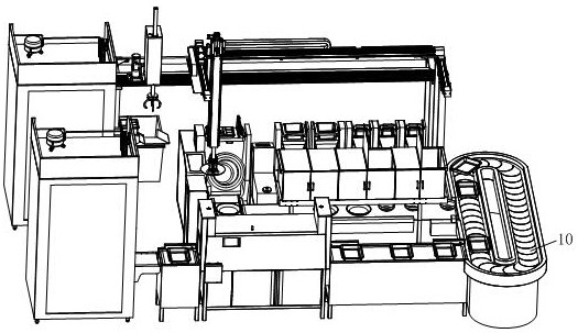 本实用新型涉及一种自动化厨房设备,包括第一冷柜设备、第二冷柜设备、料盒抓放设备、自动化炒菜机设备、自动化煎炸及煮厨房设备、自动碗碟盘投放设备、蒸柜设备、第一输送设备、第二输送设备、第三输送设备、第四输送设备、第五输送设备及餐料回转设备;第一冷柜设备、自动炒菜机设备、自动化煎炸及煮厨房设备均位于料盒抓放设备旁,料盒抓放设备可将第一冷柜设备的料盒放置在自动炒菜机设备;其具有实现全自动化、无人化、标准化及程序化的食材加工工作,加工后的食材味道统一,高效快速,结构紧凑,设备成本低,利于普及等优点。