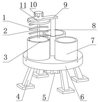 本实用新型公开了一种膏药加工生产用上料装置,包括底座,所述底座顶部外壁开设有等距离分布的圆形槽,且圆形槽内壁滑动连接有粉碎壳体,所述底座底部外壁安装有伺服电机,且伺服电机输出轴顶部外壁安装有电动伸缩杆,电动伸缩杆顶部外壁安装有顶板,所述顶板顶部外壁一侧安装有电动机,且电动机输出轴底部外壁安装有旋转轴,顶板底部外壁安装有密封盖,粉碎壳体顶部外壁开设有等距离分布的滑动槽。本实用新型通过设置有底座上的伺服电机、电动伸缩杆、顶板和电动机下的粉碎杆,能够对粉碎壳体内部的原料进行粉碎处理,设置有底座上的导热板和加热杆,能够对粉碎壳体进行加热,提高了粉碎的效果。
