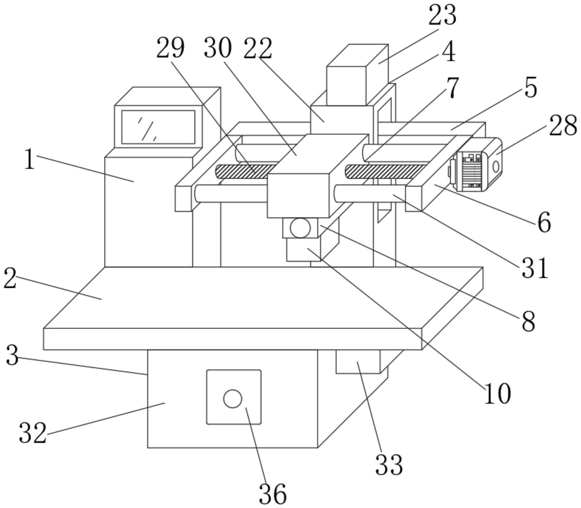 本发明公开了一种点阵式聚焦超声能量输出装置,包括超声主机,所述超声主机位于床板的一侧,所述床板的底端设置有平移机构;通过设置平移机构、升降机构、横向移动机构和电动滑台,将外壳与电动滑台滑动连接,外壳的内部下方设置有声波头,当患者躺在床板上后,平移机构通过驱动床板将患者移动到声波头的位置,升降机构便于根据患者的体征对声波头进行高度调节,在声波检查过程中,通过横向移动机构驱动声波头进行横向移动,进而使声波头更换不同的检查位置,通过电动滑台使声波头可以纵向更换检查位置,进而使声波头达到了全方位移动的效果,从而代替了手动移动声波头,降低了医护人员的工作负担。