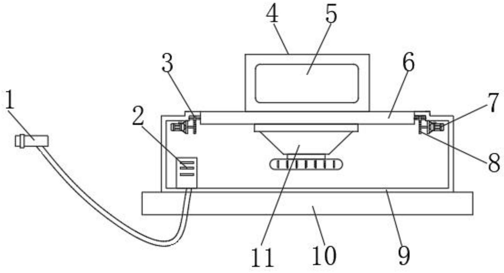 本实用新型属于汽车配件技术领域,尤其为一种车速提醒装置,包括底座板,所述底座板的顶端设置有底框,所述底框和底座板固定连接,所述底框的内侧设置有控制单元,所述底框的外侧设置有车速传感器,所述底框上设置有翻转板,所述翻转板的顶端设置有外壳,所述外壳上设置有显示屏,所述外壳的内侧设置有娱乐通信控制模块,所述娱乐通信控制模块的一侧设置有扬声器,所述扬声器的一侧设置有电池;通过设置的控制单元和显示屏来便于使用,设置的控制单元能够将检测的车速进行反馈,从而通过显示屏来进行车速的显示,便于驾驶员进行车速的了解,通过设置的扬声器来进行间断的语音播报,从而起到预防超速的作用,减少驾车过程中出现的超速。