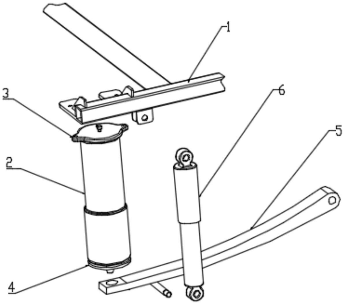 本实用新型提供了一种观光车用空气弹簧快速安装结构,包括由上座、橡胶气囊、底座组成的空气弹簧和机架,还包括拖曳臂和减震器,在底座的底部设有锥度凸台,在拖曳臂的尾端与锥度凸台相对应的位置上设有与锥度凸台相匹配的锥度凹坑,减震器的上下两端分别设有上端螺栓安装孔和下端螺栓安装孔,在机架的底部与减震器相对应的位置上设有与上端螺栓安装孔相匹配的机架安装孔,拖曳臂上还设有拖曳臂螺栓,拖曳臂螺栓与减震器的下端螺栓安装孔相匹配。通过锥度凸台和锥度凹坑的相互配合,本实用新型可实现空气弹簧与拖曳臂的快速装配,并且结构简单,生产成本低,便于推广应用。
