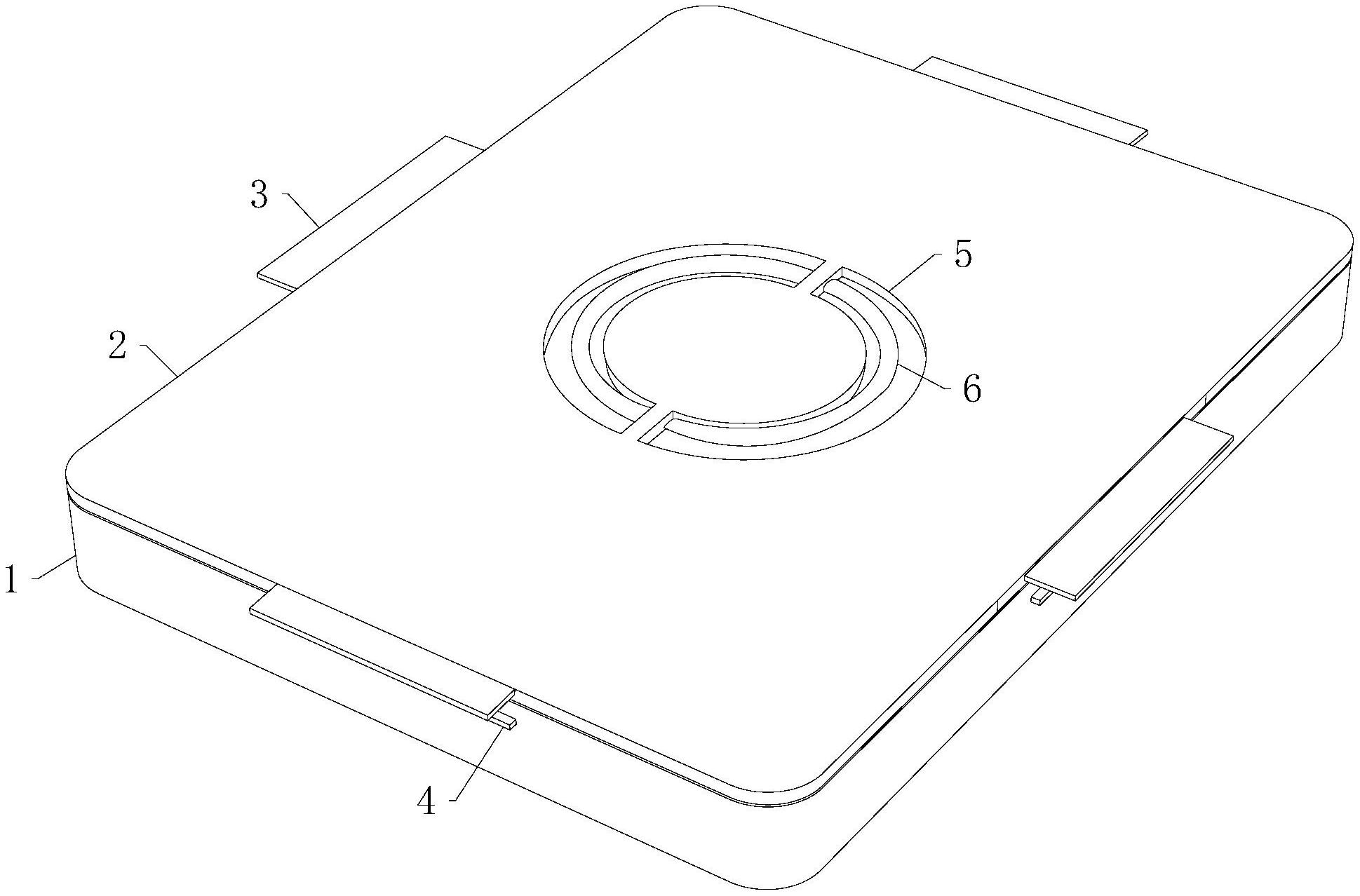 本实用新型公开了一种果冻杯型颜料调色盒,属于颜料盒领域,一种果冻杯型颜料调色盒,包括颜料盒体和盖设于颜料盒体上的盖体,颜料盒体的四个侧边外壁均固设有卡块,盖体的四个侧边外壁均转动连接有卡件,卡件与卡块相卡接,颜料盒体内放置有带有多个放置孔的内安置架,每四个放置孔之间均开凿有一个辅助拉槽,每个放置孔内均放置有颜料杯,颜料盒体前后两内壁均固设有至少一组定位块,可以实现通过内安置架与颜料盒体之间的可拆卸式连接,方便单独取放颜料杯,同时方便对颜料盒体内壁进行清理,且在使用时可将内安置架单独取出,颜料盒体内部可存储其他绘画物件,提高颜料盒体的空间利用率。