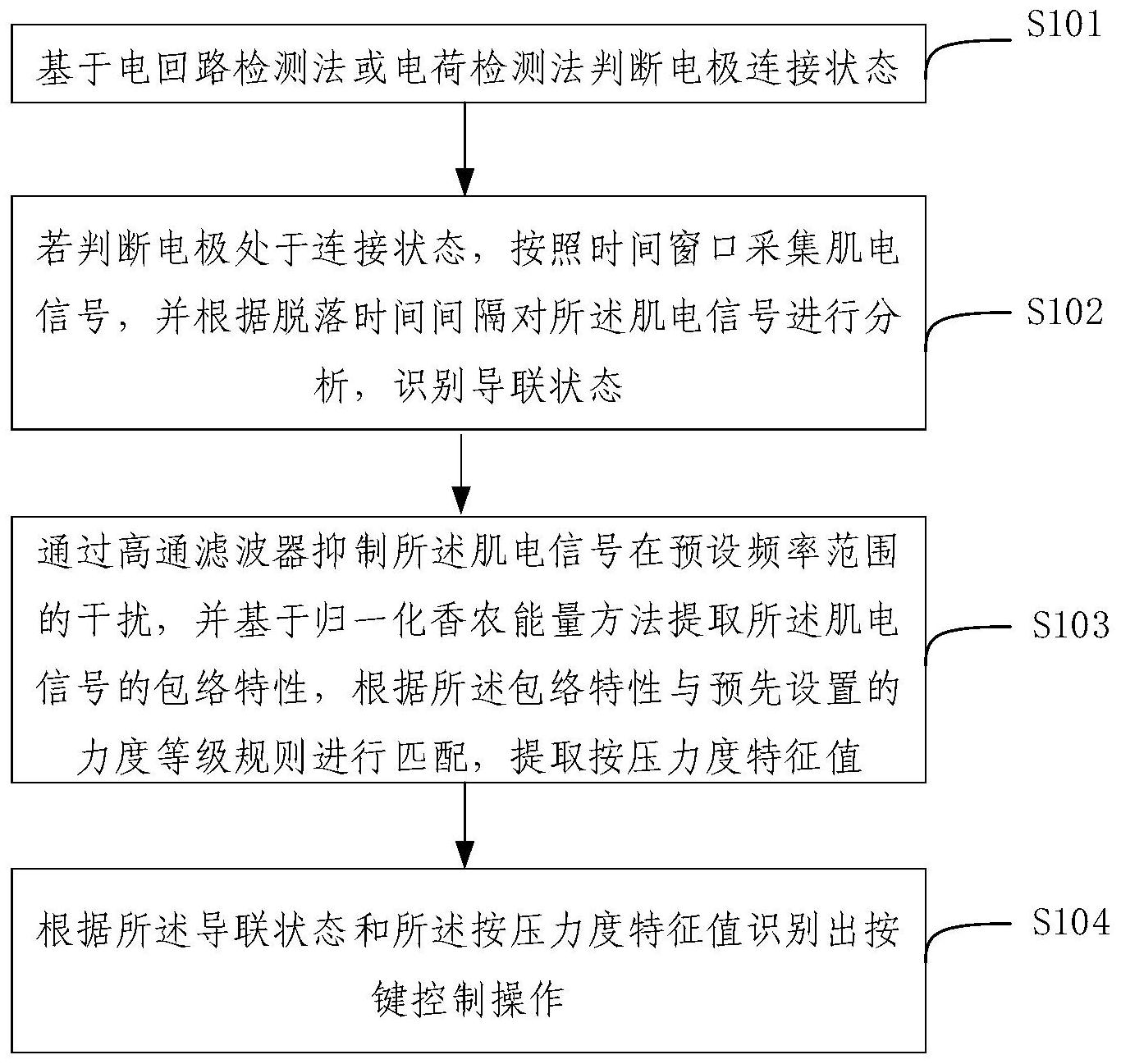 本发明实施例提供一种心电电极复用为按键的方法、装置及存储介质,所述方法包括:基于电回路检测法或电荷检测法判断电极连接状态;若判断电极处于连接状态,按照时间窗口采集肌电信号,并根据脱落时间间隔对所述肌电信号进行分析,识别导联状态;通过高通滤波器抑制所述肌电信号在预设频率范围的干扰,并基于归一化香农能量方法提取所述肌电信号的包络特性,根据所述包络特性与预先设置的力度等级规则进行匹配,提取按压力度特征值;根据所述导联状态和所述按压力度特征值识别出按键控制操作。本发明实施例实现了电极和按键的复用,无机械按键的臃肿和繁琐,提升心电检测效率,还能够避免干扰信号,提高按键控制操作识别准确性。