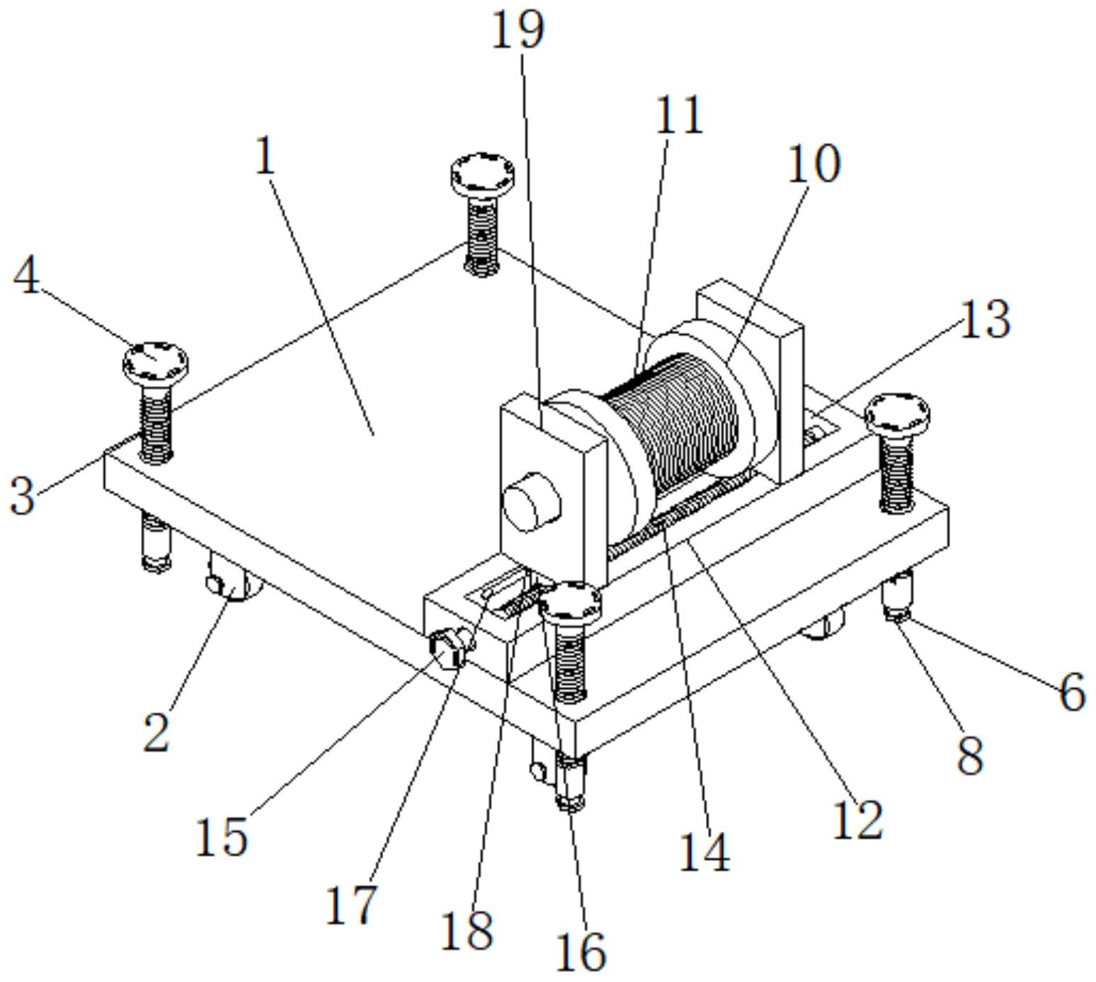 本发明公开了一种消防阻燃电伴热带,包括安装板,所述安装板的底部设置有承重滑轮,所述安装板的顶部螺纹连接有螺纹杆,所述螺纹杆的顶部固定连接有第一握把,所述螺纹杆的底部开设有安装腔,所述安装腔的底部滑动连接有滑块,所述安装腔的内部顶端固定连接有缓冲弹簧,所述滑块的底部固定连接有支撑底板,所述螺纹块的顶部固定连接有支撑板,两个所述支撑板之间转动连接有辊轴,所述辊轴的外表面设置有电伴热带本体。通过该装置实现了对大型的电伴热带进行便捷移动时的同时,也方便对其进行固定,提高了该装置的稳定性,以及提高了操作员使用效果,以及通过缓冲弹簧对该装置进行缓冲减振,继而提高了该装置的使用时的实用性。