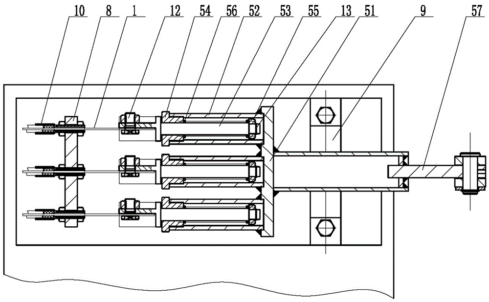 本实用新型涉及一种游艺机座椅保险带的同步开锁装置。主要解决了现有的保险带装置中的拉线的松紧度不同导致保险带开锁时同步性差、耗费时间长及游客离开座舱的效率低的问题。其特征在于:所述多条拉线(1)与开锁摆臂(2)之间设有补偿座(5),所述补偿座(5)包括座板(51)、多个套管(52)及多个拉杆(53),多个拉杆(53)的外端分别与多条拉线(1)相连接;所述座板(51)的另一侧固定有连杆(57),所述连杆(57)与开锁摆臂(2)相铰接。本实用新型设置了补偿座,通过压簧对较松的拉线提供拉力补偿,使多条拉线能够同时将多个座椅上的保险带打开,确保游客能够快速撤离。