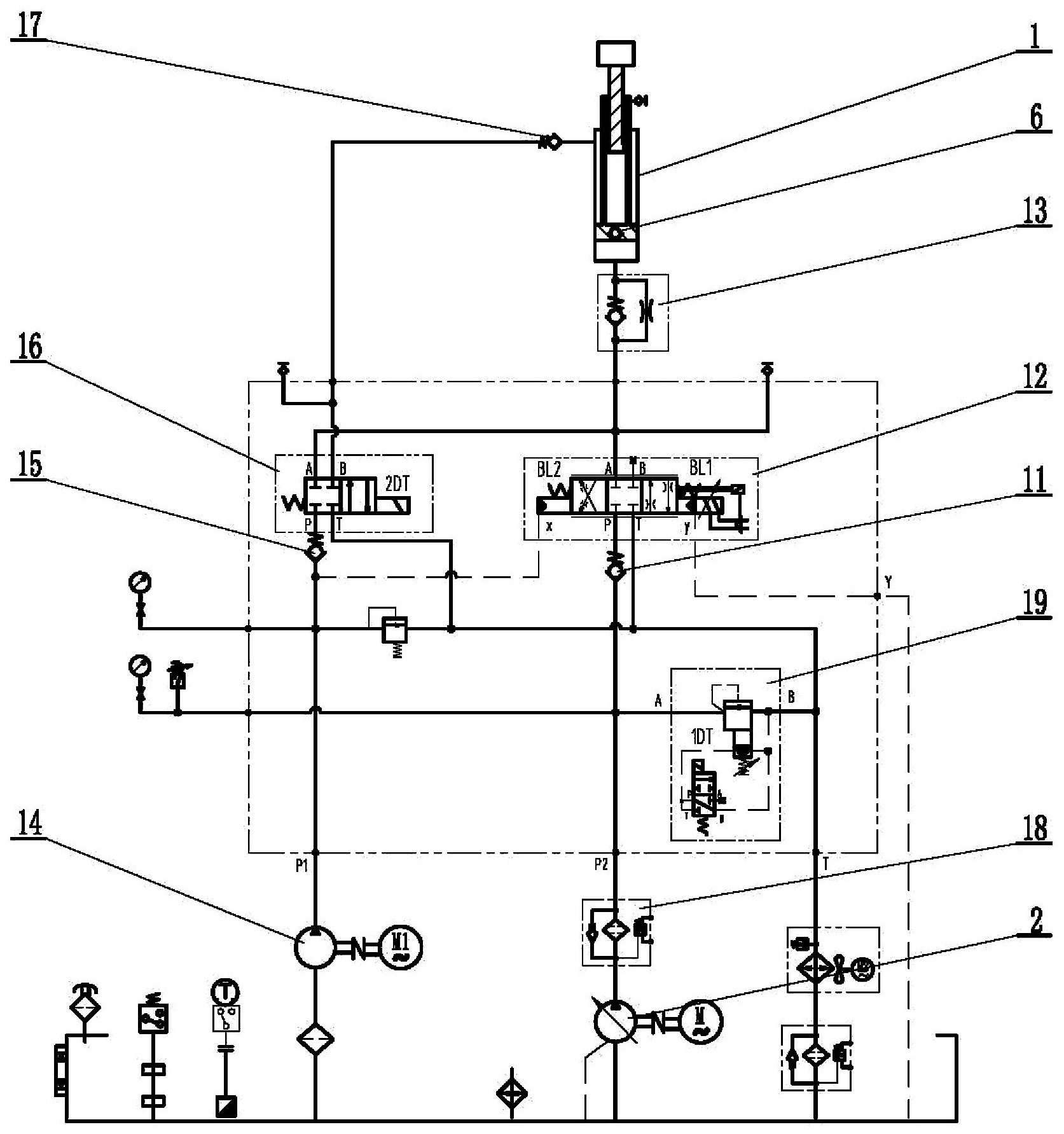 二级油缸匀速升降液压系统