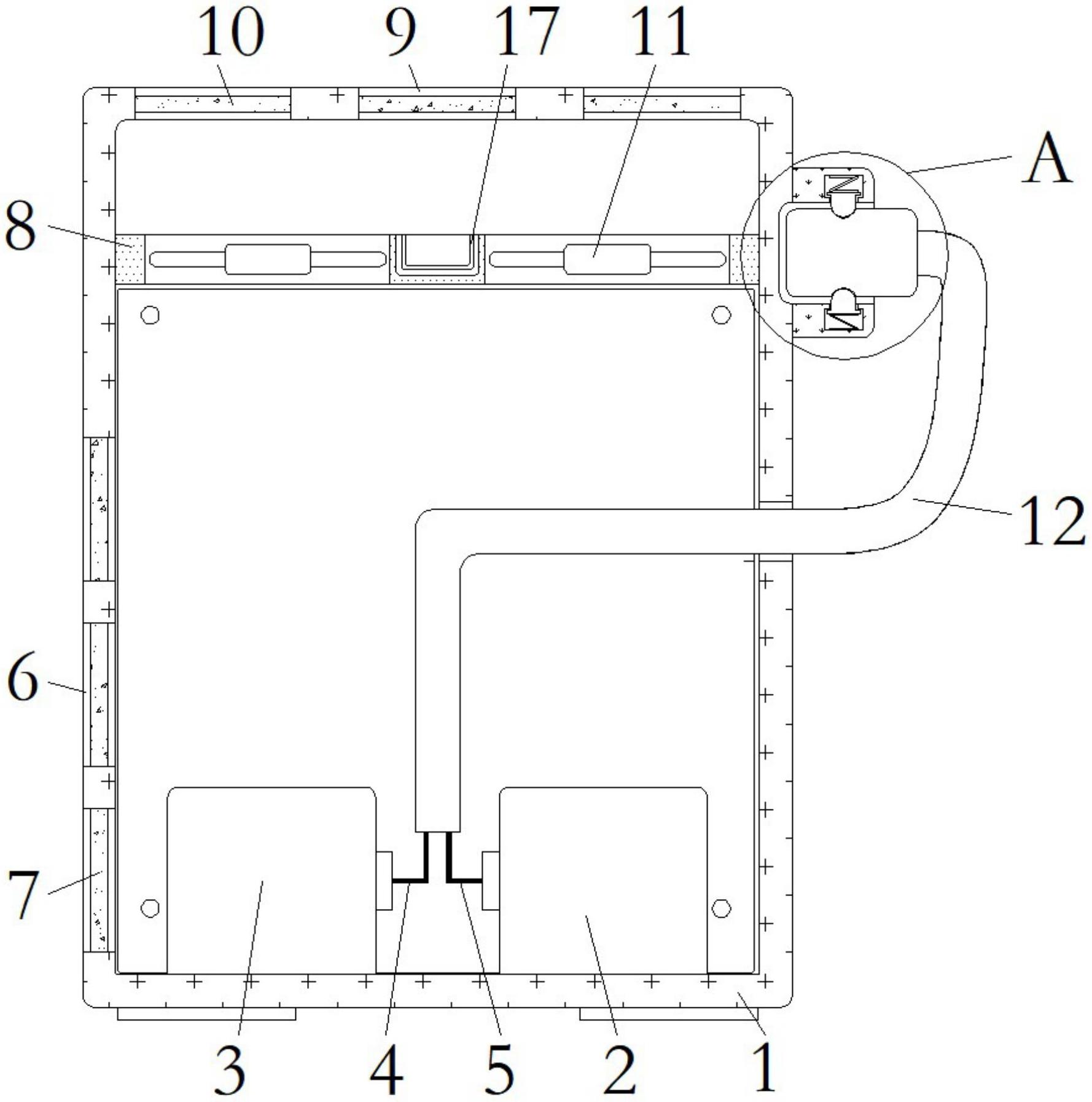 本实用新型公开了一种具有防潮功能的房车交直流充电装置,包括器体,其内部右侧连接有直流电模块,且直流电模块的左端固定连接有直流电源线,所述器体的内部左侧固定设置有交流电模块,且交流电模块的右侧固定连接有交流电源线,所述交流电源线的外侧和直流电源线的外侧均连接有橡胶保护套;进气孔,其开设在器体的上表面,且进气孔的内部固定连接有第二滤网,所述器体的左表面开设有散热孔,且散热孔的内部固定连接有第一滤网,所述器体的前端设置有器门,且器体的内部右侧连接有防潮板。该具有防潮功能的房车交直流充电装置,方便对交直流充电器进行防潮,方便对交直流充电器进行散热,且方便对交直流充电头进行固定。