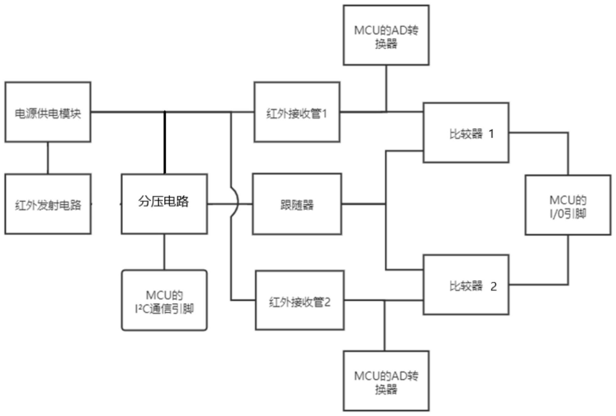 本发明提供了一种基于数字电阻的光电信号采样电路,包括分别耦接于第一参考电压和电源地之间的红外接收单元一和红外接收单元二,同相输入端耦接红外接收单元一电压输出端的第一比较器,同相输入端耦接红外接收单元二电压输出端的第二比较器,以及分别耦接第一比较器和第二比较器反相输入端的参考电压输出单元,所述参考电压输出单元包括耦接参考电压源的分压电路和跟随比较器,以及耦接分压电路的MCU,所述分压电路包括串接的分压电阻和数字电位器。本发明的方案通过采样红外接收单元实际的输出电压,并经计算来设置数字电位器阻值,进而调整回路分压,能够准确设定参考电压,使得采样结果更加稳定准确。