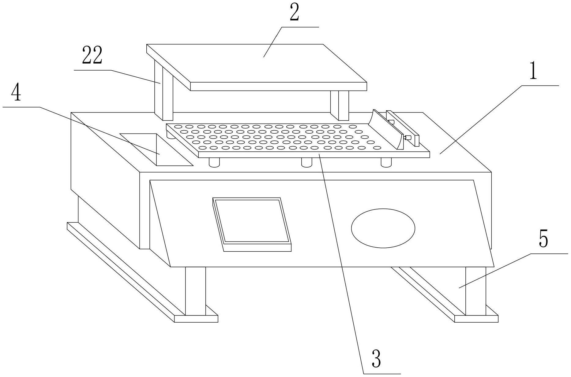 本实用新型公开了一种PVC手套冷却成型装置,涉及冷却成型装置技术领域,包括成型装置本体和固定架,所述成型装置本体的底部固定连接有固定架,所述成型装置本体的顶部设置有冷却机构,所述成型装置本体顶部的一侧设置有收集机构,所述冷却机构包括有冷却铜管。本实用新型通过液压杆和连接板的配合,带动吸热铜块移动到PVC手套的顶部,再通过吸热铜块和石墨块的配合,吸收PVC手套的热量,再通过吸气泵和冷却器的配合,快速将热量排出,并对PVC手套进行冷却成型,避免了现有的冷却成型装置,对于PVC手套的冷却速度较慢,耽误PVC手套生产的进程,导致装置的工作效率较低的问题,使得快速对PVC手套进行冷却成型,提高装置的工作效率。