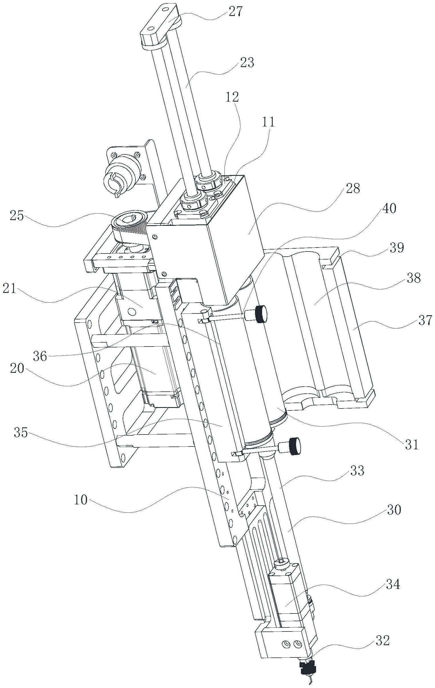 本实用新型属于点胶装置技术领域,尤其涉及一种AB胶点胶装置,包括安装板、设置在安装板上端的驱动机构、设置在安装板上且位于驱动机构下端的出胶机构。出胶机构包括两相互平行的储胶筒、出胶头和一端与两储胶筒连通另一端与出胶头连通的混胶管道。驱动机构同步挤压两储胶筒内的胶水。将A胶和B胶分别注入规格相同的储胶筒内,驱动机构同时挤压两储胶筒,将储胶筒内的A胶和B胶等量注入混胶管道中进行混合,从而精确得到1比1配比的AB胶,有利于点胶工作的进行,同时采取一个驱动机构相对与现有技术中量单液点胶阀对比,此驱动机构能节省一个驱动元,更加节省成本。