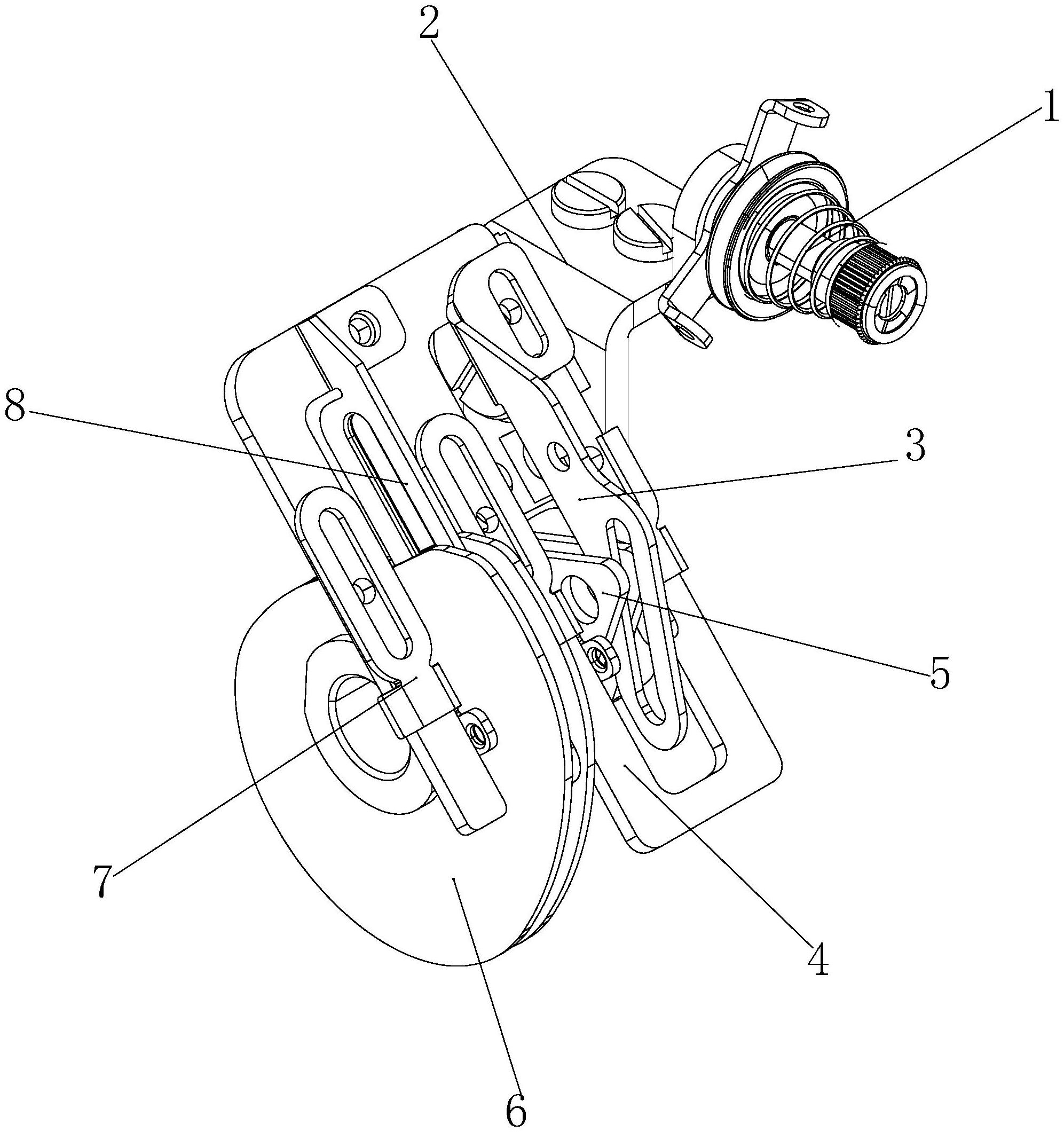 本实用新型公开了一种底线张力控制机构及缝纫机,包括打线架,打线架的出线侧设有第一避让槽,打线架的进线侧设有第二避让槽;打线片,打线片设置在第一避让槽上方,打线片上设有打线导向槽;打线凸轮,打线凸轮设置在第一避让槽下方;底线控制片,底线控制片设置在第二避让槽上方,底线控制片上设有底线控制槽;底线控制凸轮,底线控制凸轮设置在第二避让槽的下方,底线控制凸轮与打线凸轮同轴设置并能够同步转动;第一过线件,第一过线件固定设置在打线片和底线控制片的两侧。本实用新型通过对底线量的控制达到底线张力的控制,在缝制薄弹面料时,减小了底线张力对面料的作用,避免了底线拉扯造成的面料起供现象。
