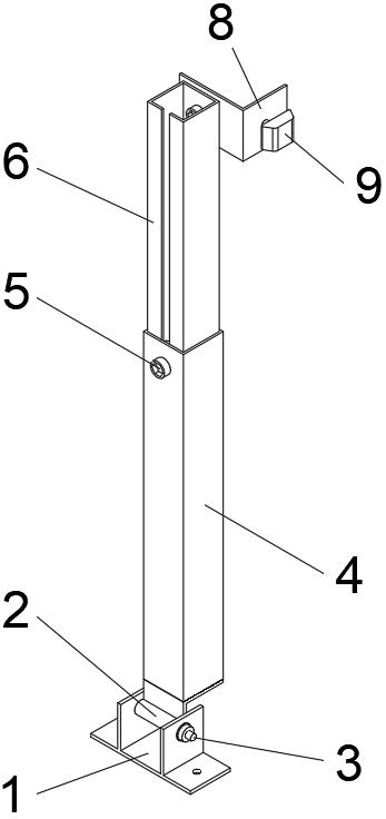 本实用新型涉及太阳能光伏组件的伸缩支架,包括底座,所述底座顶端的内侧活动安装有旋转支架,所述旋转支架与底座通过第一螺杆贯穿固定,所述旋转支架的上方安装有下支杆,所述下支杆的底部与旋转支架通过第二螺杆贯穿固定,所述下支杆的内侧插接安装有上支杆,所述上支杆与下支杆通过第二螺栓及锁紧块夹紧固定,所述上支杆顶端的外壁上安装有上支架,所述上支架与上支杆通过第二螺杆贯穿固定,所述上支架的端部插接安装有夹块。本实用新型太阳能光伏组件的伸缩支架,通过在锁紧块与上支杆相接触一面的外壁上开设有多条锯齿状凹槽,该锯齿状凹槽与上支杆的端面平行的设置,增大锁紧块与上支杆的摩擦力,提高上支杆固定的牢固性。
