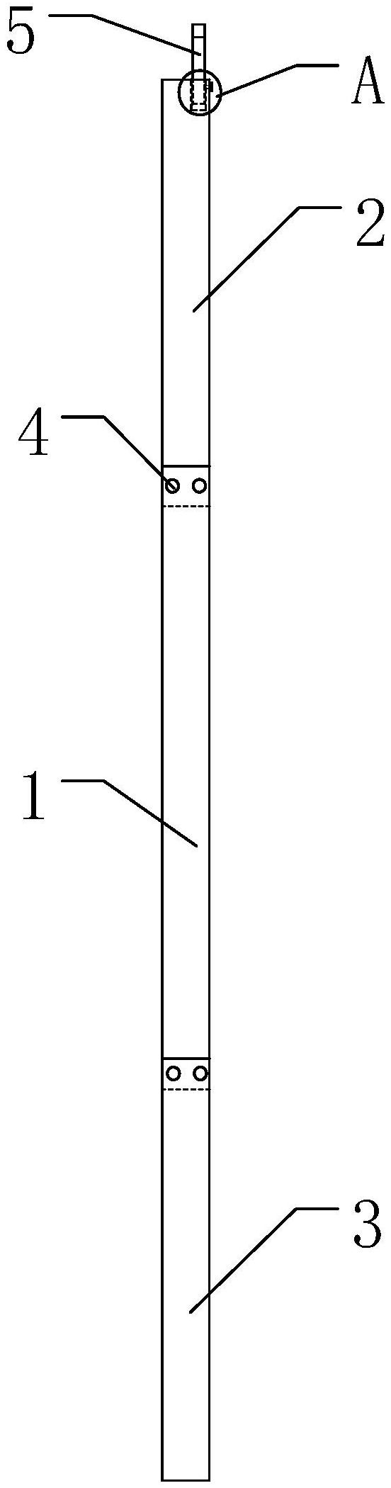 本实用新型公开了一种光伏太阳能电池串检测装置,包括用于检测电池串长度的检测杆,检测杆包括端头杆一和端头杆二,端头杆一与端头杆二之间卡接有若干个中间杆。卡接结构包括搭接的连接板一和连接板二,连接板一的上表面上设置有卡扣,卡扣的顶端外表面上设置有向外凸起的弧形的弹片,连接板二的下表面上设置有与卡扣相适配的卡槽,卡扣与卡槽卡接。端头杆一远离中间杆的一端上设置有用于检测焊带引出长度的测量板,测量板远离端头杆一的一端设置有检测开焊情况的检测板。本实用新型采用上述结构的光伏太阳能电池串检测装置,能够解决现有的电池串依靠人工目视检测准确率较低的问题。