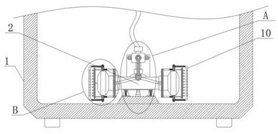 本实用新型公开涉及厨用设备技术领域,具体为可软化水质的洗碗机进水系统,包括箱体和清洗泵,所述清洗泵通过回弹组件设于箱体内下端中心,箱体内下端竖直支撑组件,支撑组件一侧竖直活动插接设有连接管,且连接管下端与清洗泵上端相接触,该装置通过在清洗泵的两侧蓬头上进行安设过滤罩,对箱体内部的一次过滤循环水进行二次过滤,降低清洗泵的堵塞频率,以及维修维护的成本和时效,将清洗泵通过回弹组件活动插接置于箱体内部,在过滤罩的过滤孔进行堵塞时,随着清洗泵沿着回弹杆上升,四个臂杆推动两侧清理组件同步带动若干清理针对过滤孔进行疏通,操作简单,提高过滤效率,同时成本较低。