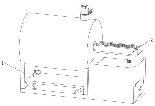 本实用新型公开了一种生产水性漆用防沉淀装置,涉及水性漆技术领域,电机的动力驱动端连接有齿轮,固定座的顶部连接有连接板,连接板的内部两侧分别设置有第一齿条和第二齿条,连接板的一端安装有连接杆,连接杆的一端连接有固定板;工作人员可以将一些使用的工具放入放置箱内,给工作人员带来存储空间,带来便捷;电机带动齿轮进行转动,连接板在连接座的顶部进行滑动,此时固定板位于料桶内向外进行滑动,水性漆从固定板开设的通孔处来回移动,通过齿轮、第一齿条和第二齿条的设置带动固定板在料桶的内部进行往复运动,进而有效增大搅拌装置与水性漆的接触面积,防止水性漆出现沉淀,提高对水性漆后期使用时的使用质量。