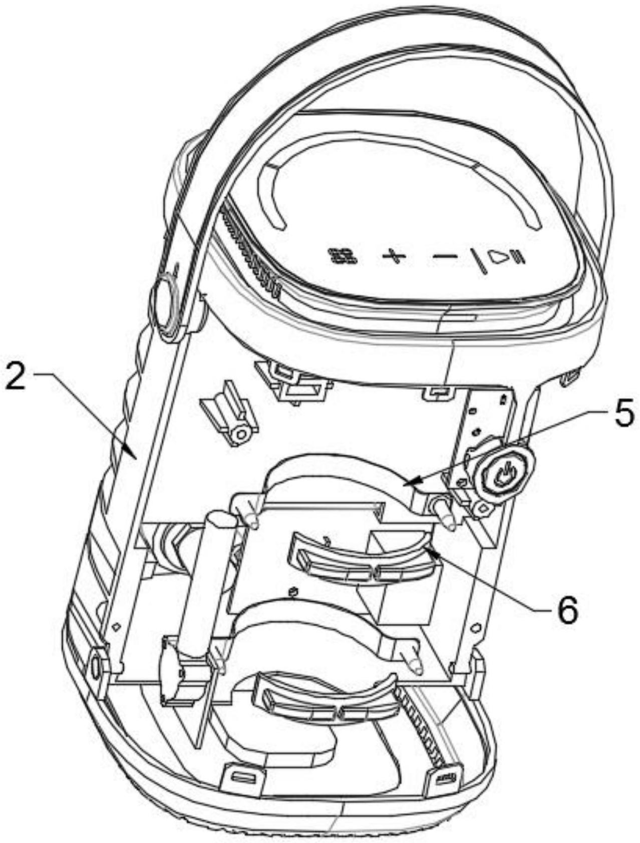 本实用新型涉及气泵技术领域,公开了一种气泵动力系统低振动结构,包括气泵外壳,所述气泵外壳的内部安装有内壳一和内壳二,所述内壳二的内壁固接有连接柱,所述连接柱的端部螺栓连接有卡箍,所述卡箍为半圆弧形结构,所述内壳二的侧壁开设有对位槽,所述对位槽的表面安装有橡胶垫,所述电机卡设于所述橡胶垫和所述卡箍形成的圆形内。通过设置卡箍和橡胶垫,可以对气泵内部的电机进行固定,电机运行发生振动时,可以有效降低电机振动的强度,而橡胶垫本身是通过将嵌入凸起卡设于对位槽的内部,能够对橡胶垫进行限制,避免橡胶垫发生位移,橡胶垫在吸收水平方向振动后,可以向中心收缩,以吸收径向负面动能,减少传动能量的散失。