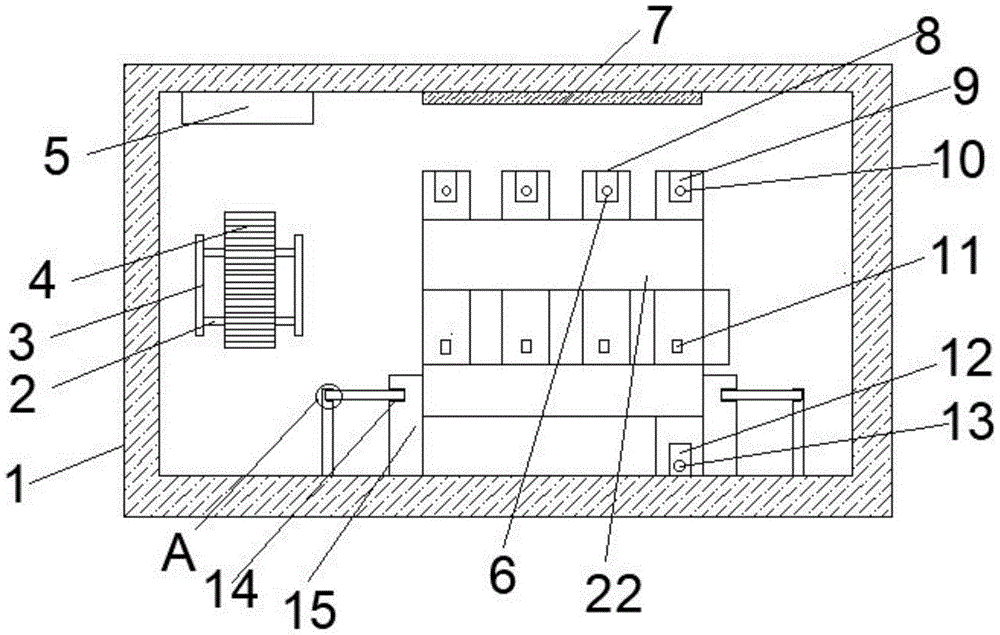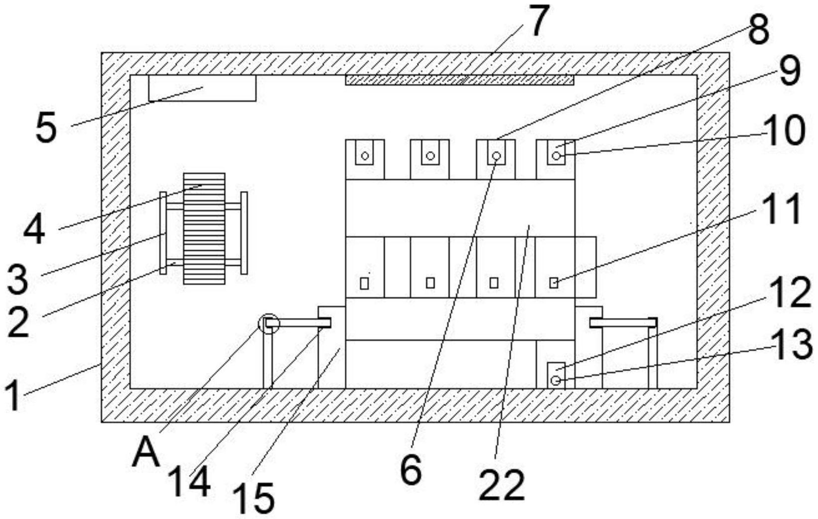 本实用新型公开了一种多层保护的浪涌保护器,包括机体,所述机体的内部固定连接有电源,所述机体的内壁固定连接有固定杆,所述固定杆的一端固定连接有连接杆,所述连接杆上固定连接有变压器,所述机体的底部固定连接有浪涌保护器,所述浪涌保护器的顶部设有火线接线口,所述火线接线口上设有第一螺丝,所述火线接线口的一侧设有零线接线口,所述零线接线口上设有第二螺丝。本实用新型中,旋转轴在竖杆的内壁里转动,竖杆带动横杆转动,横杆转动移动到开孔,从而进行对浪涌保护器的固定,从而使浪涌保护器更加的稳定。