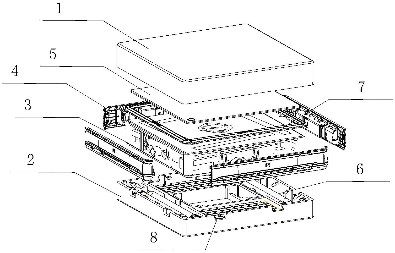 一种一体式麻将机,包括上盖、底盖和位于上盖和底盖之间的主机,所述主机上设置边框和盖板,所述主机与底盖之间放置桌腿,所述主机的底部设有与桌腿连接的连接部。本实用新型提供了一种运输和安装便捷的一体式麻将机。