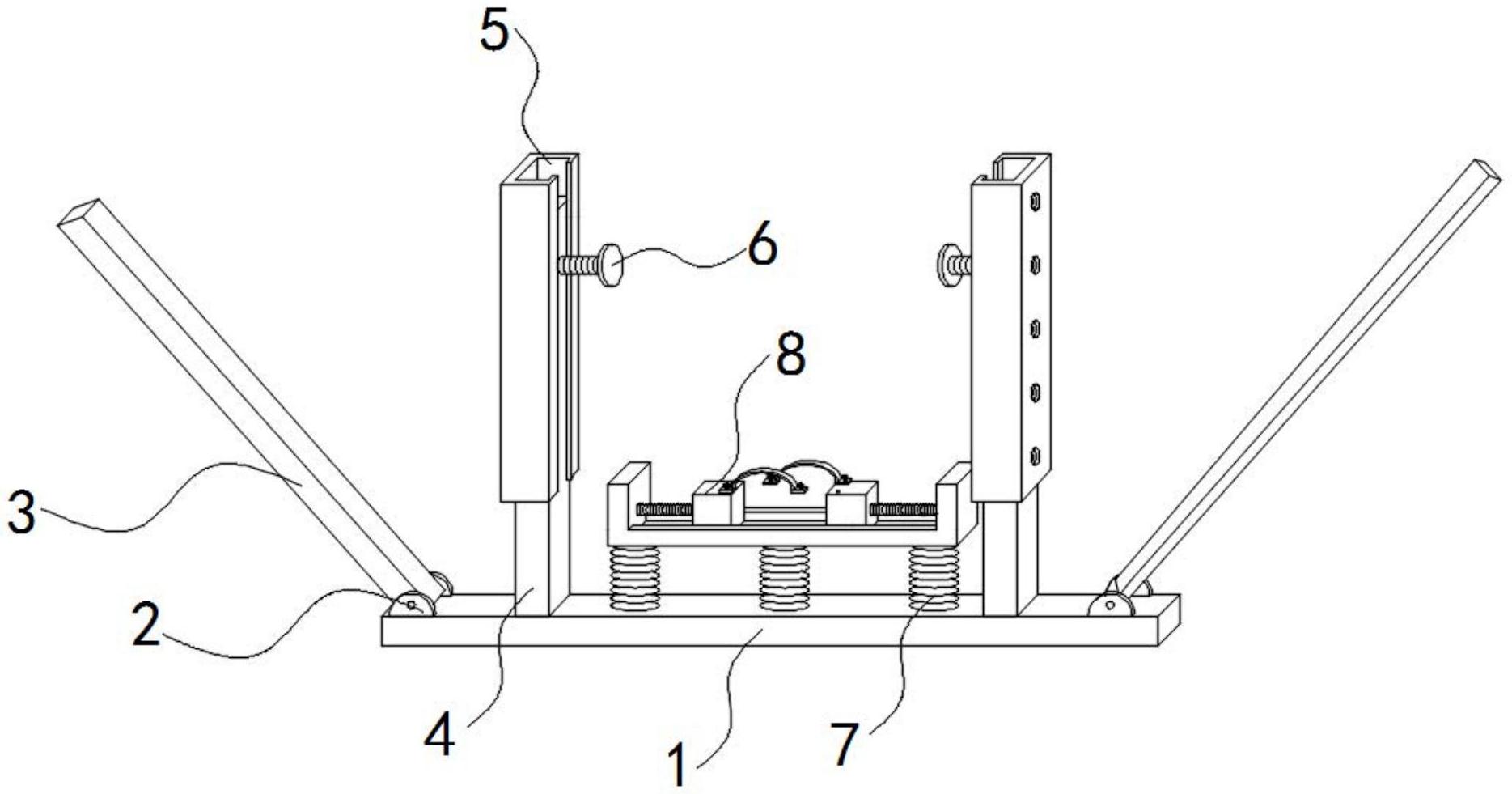 本实用新型提供了一种可以减少撞击声传递的管廊支架,属于管廊支架技术领域,包括有固定板、焊接板、旋转杆、竖杆、嵌入槽杆、胶头螺栓、第一弹簧和管道固定装置,固定板的上表面两端均焊接设置有两个焊接板。该装置通过设置有橡胶块和半弧形水管扣,通过在嵌入槽内嵌入设置有橡胶块,且橡胶块上通过螺栓设置半弧形水管扣,使得在安装时,通过将管道卡于两个橡胶块之间,在第二弹簧的弹力下,使得两个橡胶块紧贴于观管道外侧表面,且通过半弧形水管套接于管道的上方,通过螺栓固定住,使得管道与橡胶块和弧形水管扣相互之间连接均紧密,使得在管道撞击的过程中减少管道的震动,从而使得减少管道撞击发出声音。