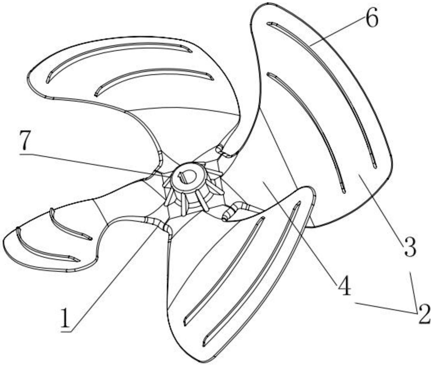 本实用新型公开了一种异形扇叶及吹风设备,包括:基体部;叶片本体,所述叶片本体与所述基体部一体成型,所述叶片本体设置有至少四个,至少四个叶片本体环绕所述基体部等间距设置,每个所述叶片本体包括呈弧形结构设置的导风部;通过叶片本体与基体部一体成型,实现对扇叶的组装,有效的减少安装步骤,从而缩短扇叶的安装时间,提高扇叶的安装效率,降低劳动成本;增加扇叶中叶片本体的数量,提高扇叶的吹风效果,每个叶片本体包括呈弧形结构设置的导风部,扇叶旋转时,弧形结构的导风部对扇叶旋转产的气流进行导向,使气流脱离叶片本体,有效的提高扇叶的气流流动的效率,提高扇叶的吹风效果。