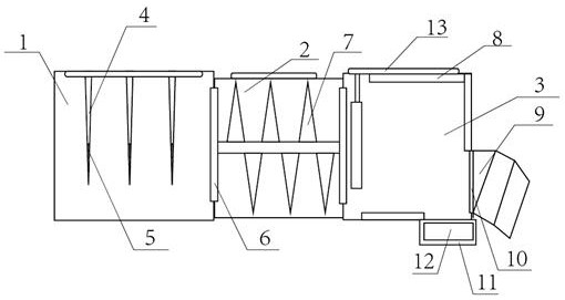 一种用于餐厨废弃物处理的自消毒压缩分选装置,包括:进料箱、搅拌装置、压缩仓、废液池、物料排出管道、控制装置,其中,进料箱内部设置有切割装置,所述的切割装置采用数量至少两个的切刀组成;所述的压缩仓内壁设置有高温加热装置,压缩仓内部设置有挤压板,所述的挤压板采用内高温材料制成;在压缩仓底部设置有废液池,所述的废液池内部设置有消毒杀菌装置,废液池侧面连接有废液排出管路;做到固液自动分离,而且通过切刀的先对过大固体废料进行切割,有助于后期的挤压,而且在压缩过程中对废料进行加热,在压缩的过程中尽量减小空间占比,是压缩更加彻底,而且对废液进行消毒杀菌,没有细菌病毒及有害物质产生。