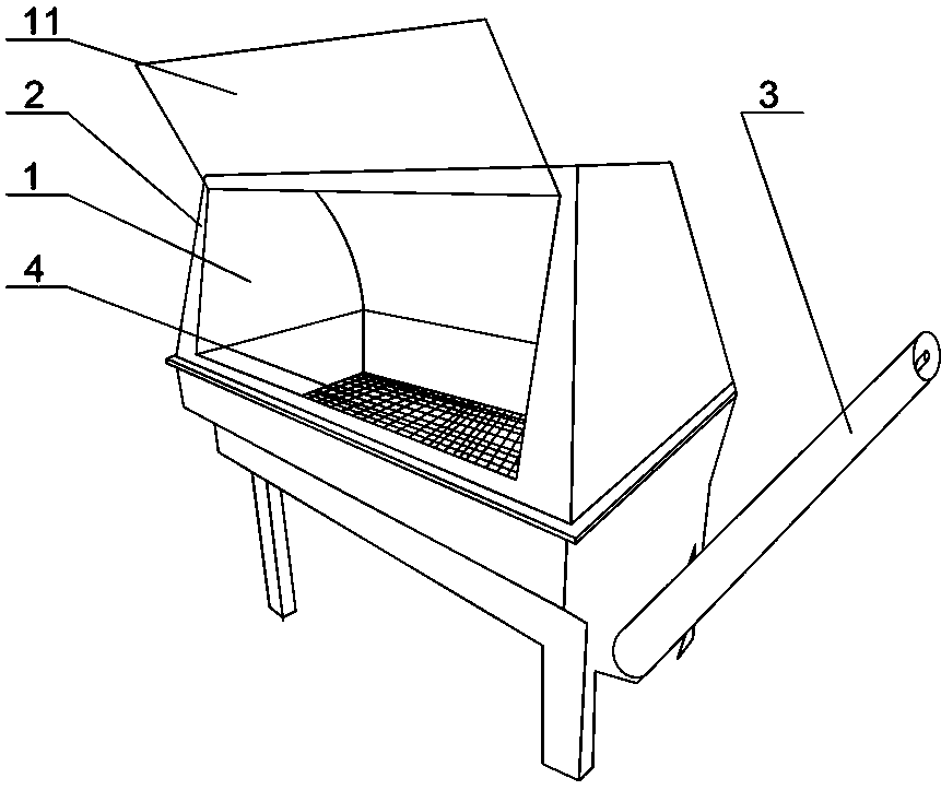 一种能够对粉状原料进行预筛选,并且对小型因受潮之类的情况结块的原料块进行磨碎的一种原料投料装置,包括内部有投料腔的外壳和投料腔底部相连通的原料输送装置,外壳上端开有投料口与投料腔相连,投料腔内设置有分割投料腔的过滤装置,过滤装置包括弹性过滤网和设置在弹性过滤网下方的硬质过滤网,硬质过滤网上有比弹性过滤网孔径小的过滤孔,硬质过滤网在水平面各方向上可与外壳产生相对移动。本实用新型的优点在于:可以对原料进行搅拌前的预先筛选;可以形成简单的粉碎机效果;结构简单易于维护;可以处理些许受潮的原料;工作时不会有粉尘飞扬的情景。